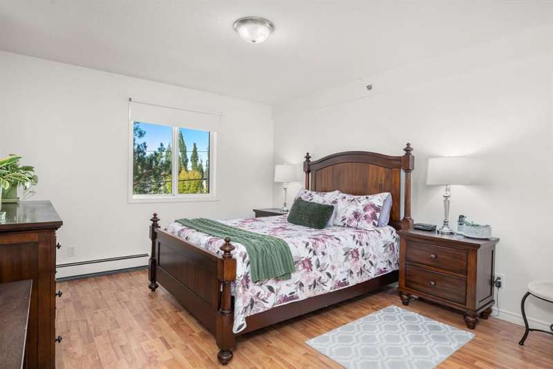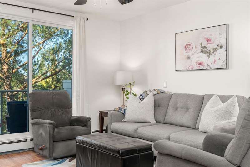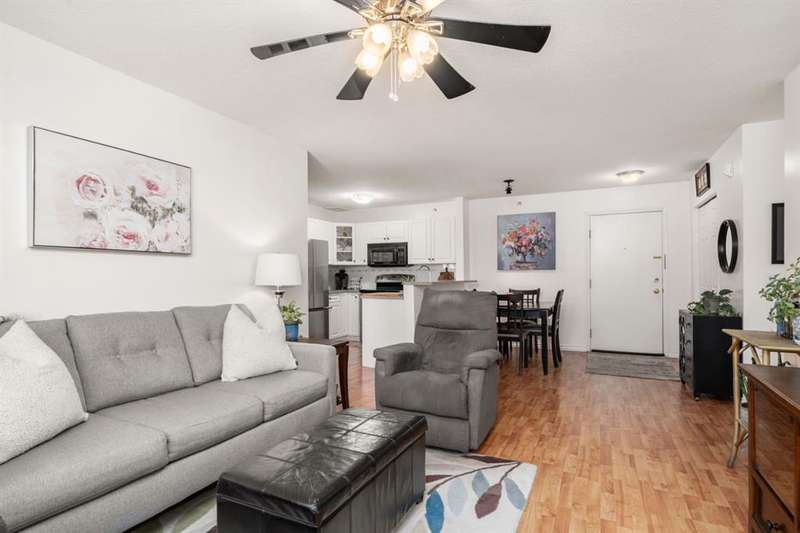 Welcome home to this beautifully maintained 2-bedroom, 2-bathroom, top floor condo, offering a perfect blend of comfort, convenience, and space. Featuring generously sized open-concept living this home is ideal for both relaxing and entertaining! As you enter you will notice the dining area is the perfect space for entertaining family and friends conveniently located next to the modern kitchen, which boasts ample cabinetry and counter space, and is perfect for budding home chefs and everyday living. Continuing in to the large living area you are greeted with large patio doors which flood the living space with natural light, creating a warm and inviting atmosphere. Leading out to your cosy, private balcony where at certain times of the year you can enjoy views of the mountains, while you have your morning coffee. The large primary bedroom includes a private ensuite, and spacious walk-thru closets, while the sizeable second bedroom makes this home ideal for a small family, a home office, or a spacious guest room with a full second 4-piece bathroom just steps away. A substantial laundry room with lots of space for hanging laundry, storing all your cleaning supplies as well as those bulk buy items, round off the features of this beautiful home. Situated in the sought-after community of Chaparral you’ll enjoy being a few minutes walk from schools, playgrounds, shopping, and dining options. Commuting is a breeze with quick and easy access to Stoney Trail and other major roads. Whether you're a first-time buyer, downsizing, or investing, this home offers incredible value in a highly sought-after location. Don’t miss your opportunity to own this spacious and conveniently located home!