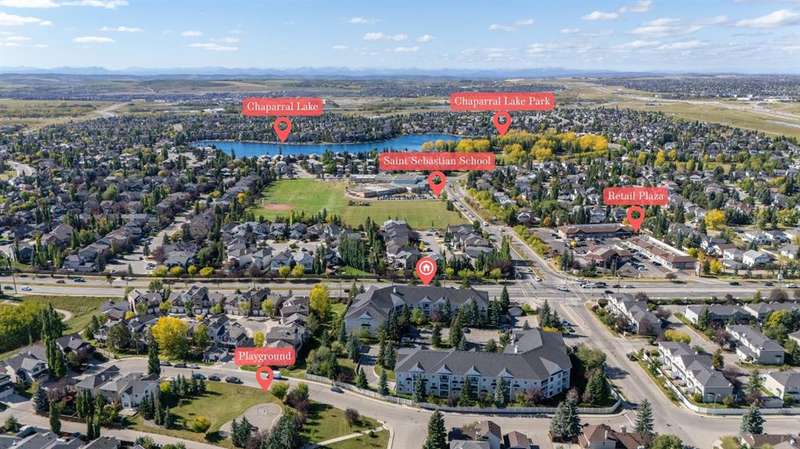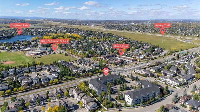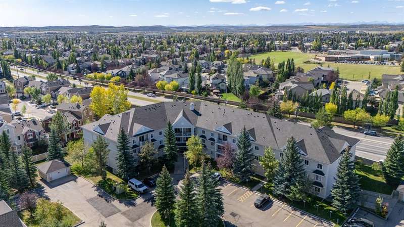 Welcome home to this beautifully maintained 2-bedroom, 2-bathroom, top floor condo, offering a perfect blend of comfort, convenience, and space. Featuring generously sized open-concept living this home is ideal for both relaxing and entertaining! As you enter you will notice the dining area is the perfect space for entertaining family and friends conveniently located next to the modern kitchen, which boasts ample cabinetry and counter space, and is perfect for budding home chefs and everyday living. Continuing in to the large living area you are greeted with large patio doors which flood the living space with natural light, creating a warm and inviting atmosphere. Leading out to your cosy, private balcony where at certain times of the year you can enjoy views of the mountains, while you have your morning coffee. The large primary bedroom includes a private ensuite, and spacious walk-thru closets, while the sizeable second bedroom makes this home ideal for a small family, a home office, or a spacious guest room with a full second 4-piece bathroom just steps away. A substantial laundry room with lots of space for hanging laundry, storing all your cleaning supplies as well as those bulk buy items, round off the features of this beautiful home. Situated in the sought-after community of Chaparral you’ll enjoy being a few minutes walk from schools, playgrounds, shopping, and dining options. Commuting is a breeze with quick and easy access to Stoney Trail and other major roads. Whether you're a first-time buyer, downsizing, or investing, this home offers incredible value in a highly sought-after location. Don’t miss your opportunity to own this spacious and conveniently located home!