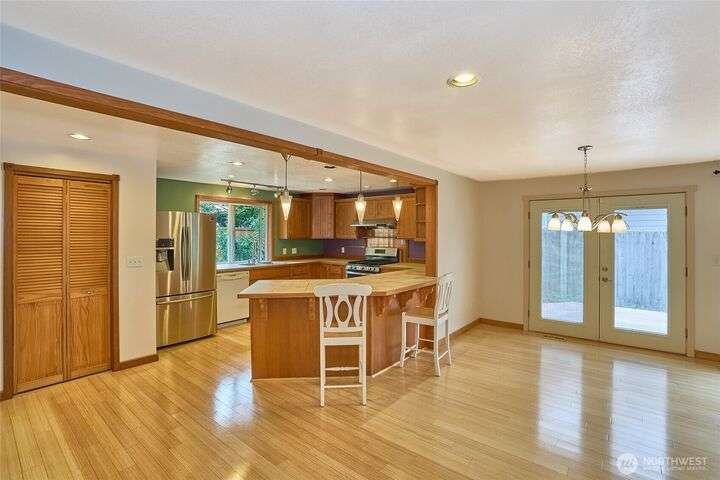 Located on the popular scenic hill neighborhood this home offers a lot of living space all on one floor. Separate living room and family room and open updated kitchen. Lots of yard space which includes large fenced area, rear deck, covered porch and convenient outdoor shed. Oversized two car attached garage and separate detached garage/shop perfect for hobbies or R.V. parking. Anderson double pane windows.