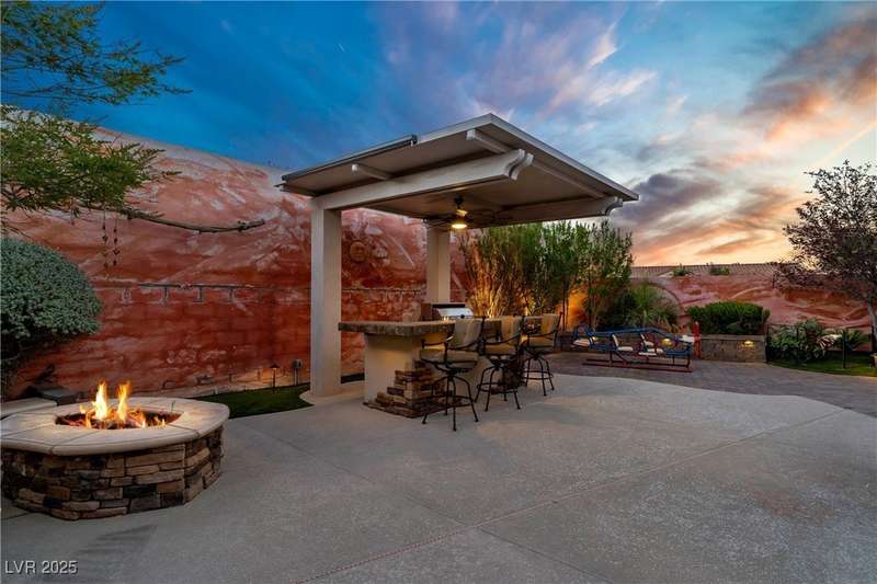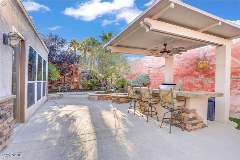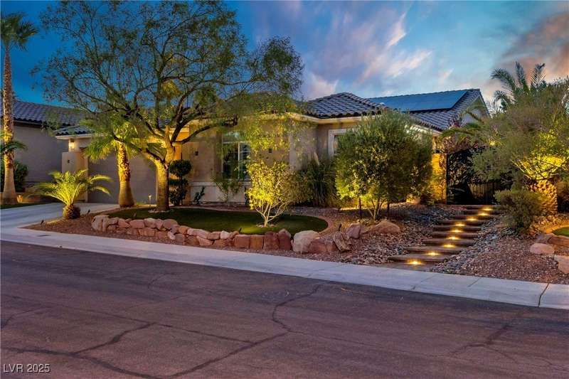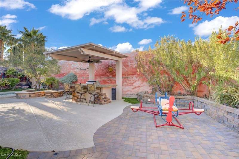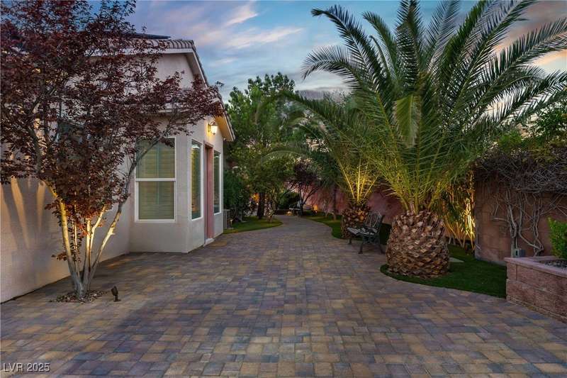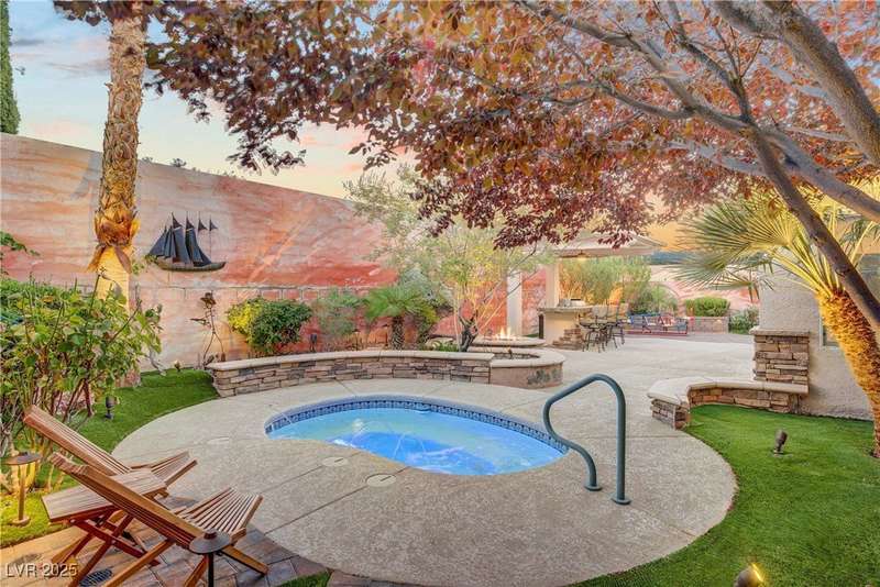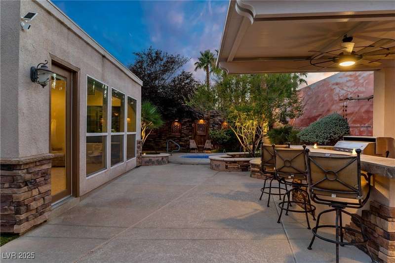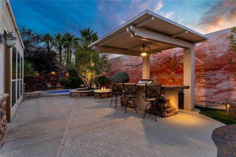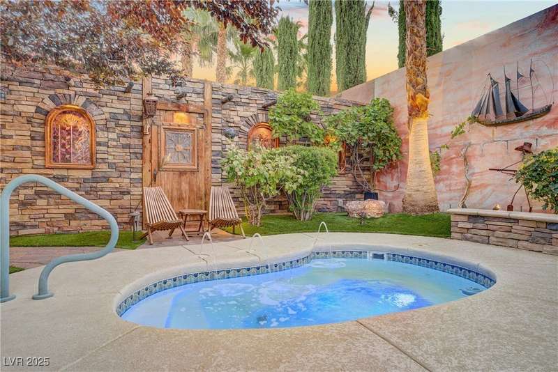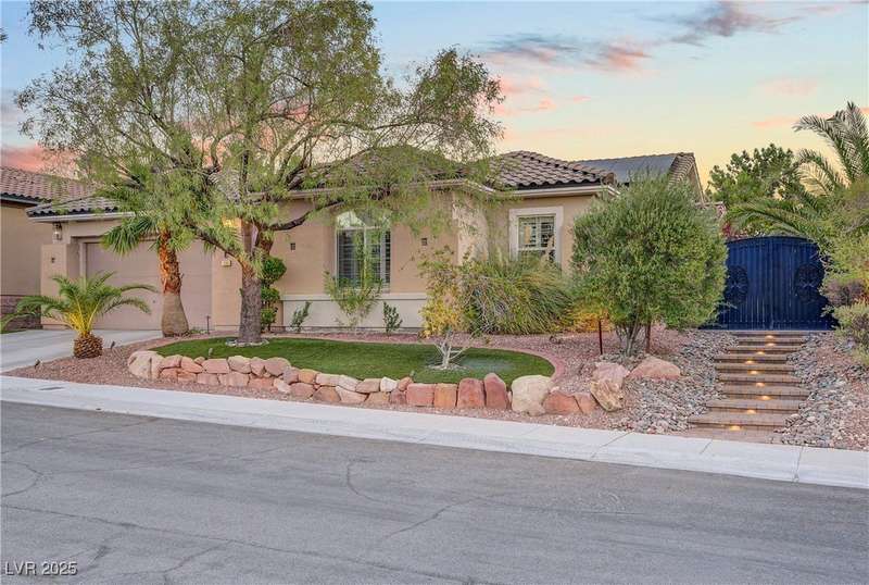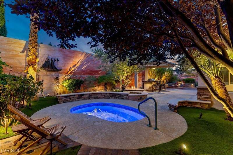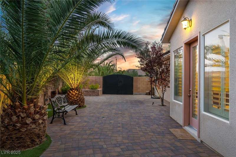 Located in the highly sought-after Miramonte all single-story community, this stunning 3,019 sq. ft. home sits on a spacious .26-acre corner lot, one of the largest in the neighborhood. The backyard is a true resort-style oasis, boasting over $200K in upgrades including lush landscaping, mature trees, custom stonework, paver walkways, fire features & a spool (spa/pool combo) surrounded by a Tuscany-inspired ambiance for ultimate relaxation. Perfect for entertaining, features a covered outdoor kitchen w/ built-in BBQ & cozy fire element. Inside, you'll find 4 spacious bedrooms, a den/office & a sunroom w/ backyard views. The open-concept layout is filled with natural light from skylights & enhanced by plantation shutters, crown molding, tile, laminate flooring throughout. The chef’s kitchen includes 42” cabinets, granite countertops, and newer appliances. A charming side yard w/ a winding path & ambient lighting completes this exceptional home where indoor elegance meets outdoor luxury.