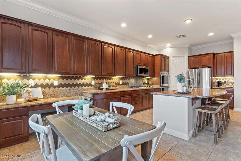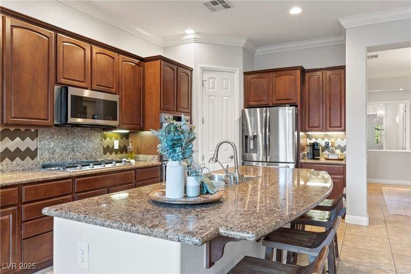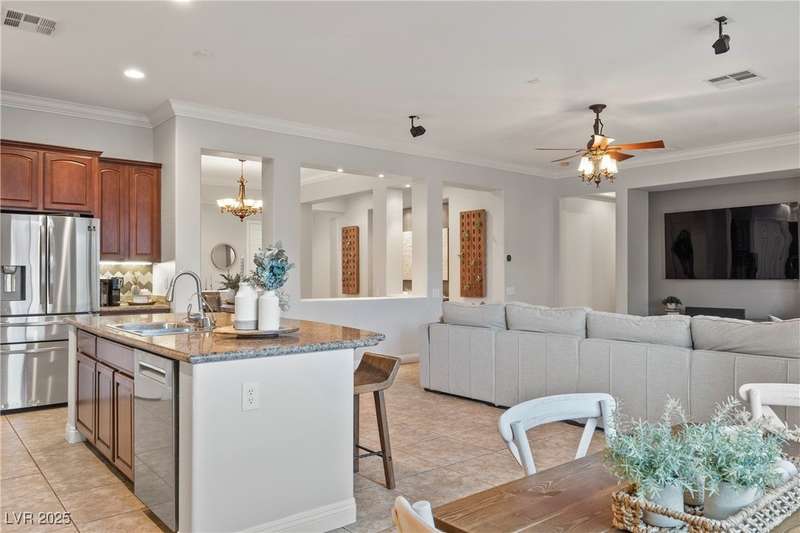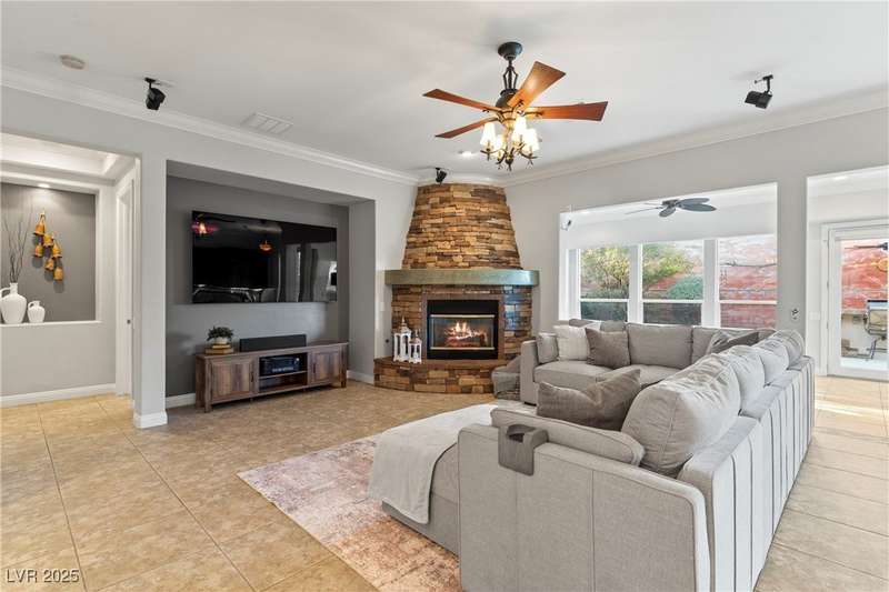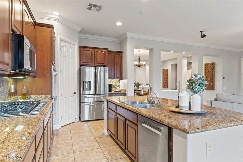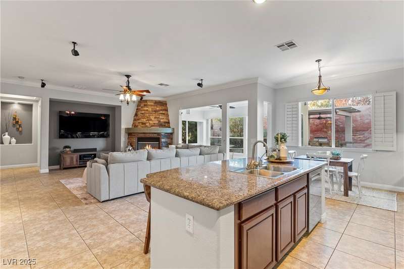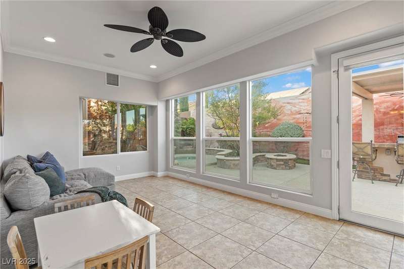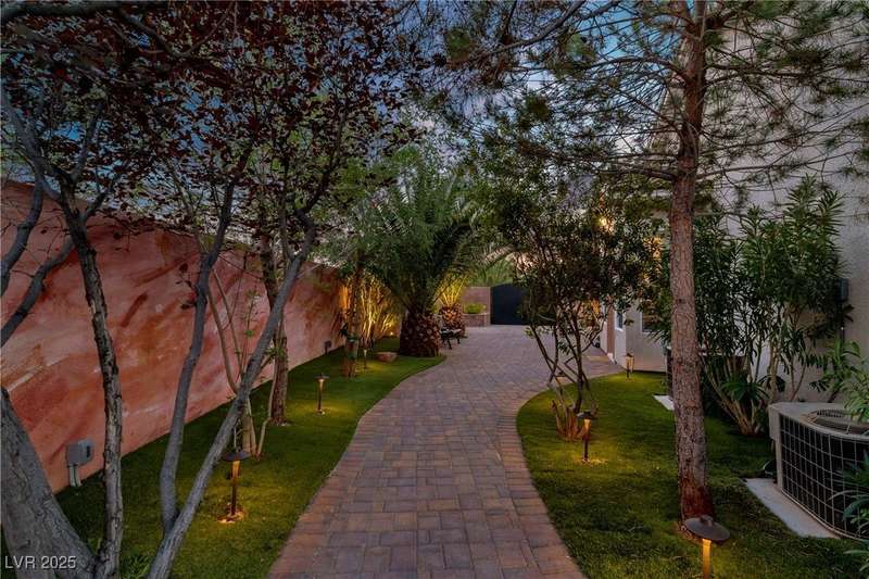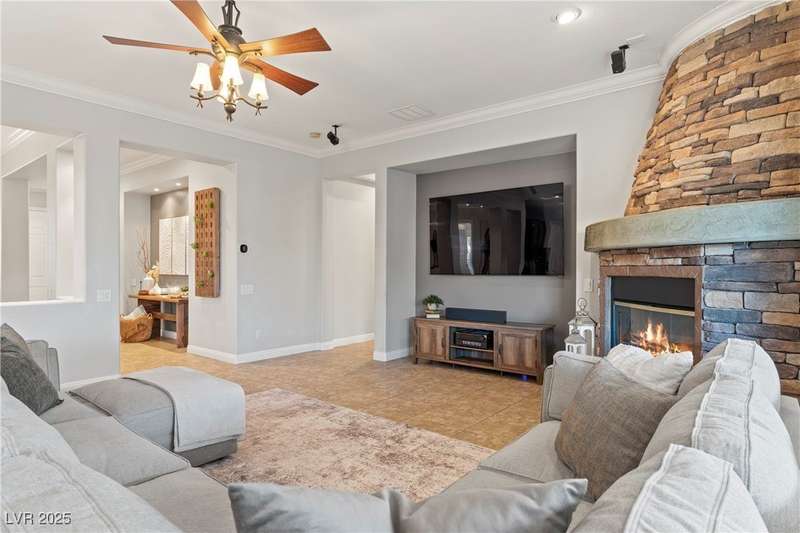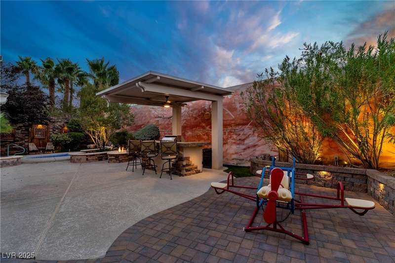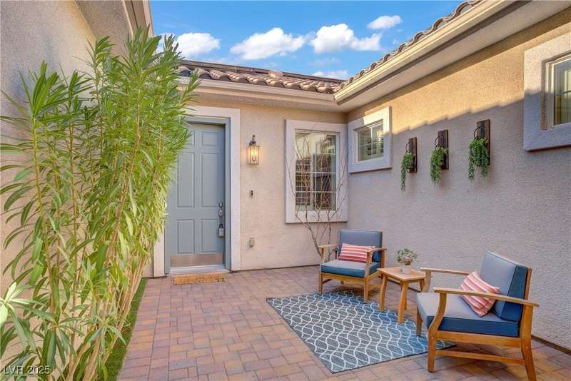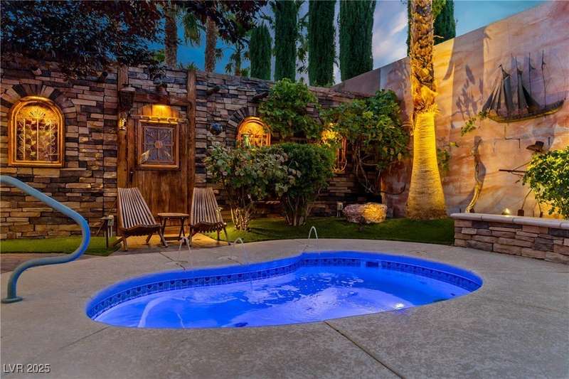 Located in the highly sought-after Miramonte all single-story community, this stunning 3,019 sq. ft. home sits on a spacious .26-acre corner lot, one of the largest in the neighborhood. The backyard is a true resort-style oasis, boasting over $200K in upgrades including lush landscaping, mature trees, custom stonework, paver walkways, fire features & a spool (spa/pool combo) surrounded by a Tuscany-inspired ambiance for ultimate relaxation. Perfect for entertaining, features a covered outdoor kitchen w/ built-in BBQ & cozy fire element. Inside, you'll find 4 spacious bedrooms, a den/office & a sunroom w/ backyard views. The open-concept layout is filled with natural light from skylights & enhanced by plantation shutters, crown molding, tile, laminate flooring throughout. The chef’s kitchen includes 42” cabinets, granite countertops, and newer appliances. A charming side yard w/ a winding path & ambient lighting completes this exceptional home where indoor elegance meets outdoor luxury.