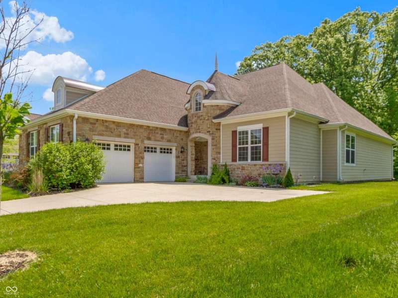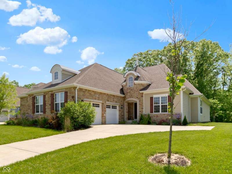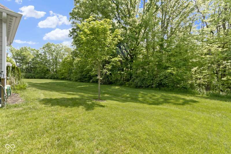 Hard to find spacious ranch with a full basement! Large great room with tall ceiling, gas fireplace and wall of windows for tons of natural light! Gourmet eat kitchen with light cherry cabinets, center island with breakfast bar, walk in pantry, hardwoods, granite countertops, Butler's pantry, recessed lights and new refrigerator! Huge master suite with view of the tree line, large step in shower, soaking tub, dual sinks and sizable walk in closet! 2nd bedroom also has a full bath and can serve as a guest suite! Formal dining room! Office or future 3rd bedroom conversion! A true full basement with 8 foot ceiling that is ready to be finished! Large private back yard that backs to the tree line, not other homes! Interior was just professionally painted and all carpet replaced! Hidden Pines is sought after and at this price it's a great opportunity to get into this neighborhood of more expensive homes! Convenient to shopping, dining, parks, walking trails and so close to charming downtown Zionsville that has so many shops and new restaurants! Easy interstate access! Award winning Zionsville schools! Do you need to do your living on 1 level and yet not give up your basement? Then this is the one, come see it today!