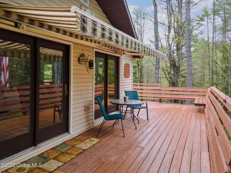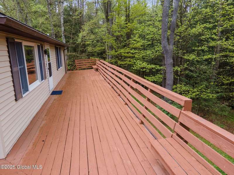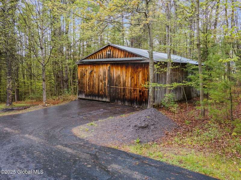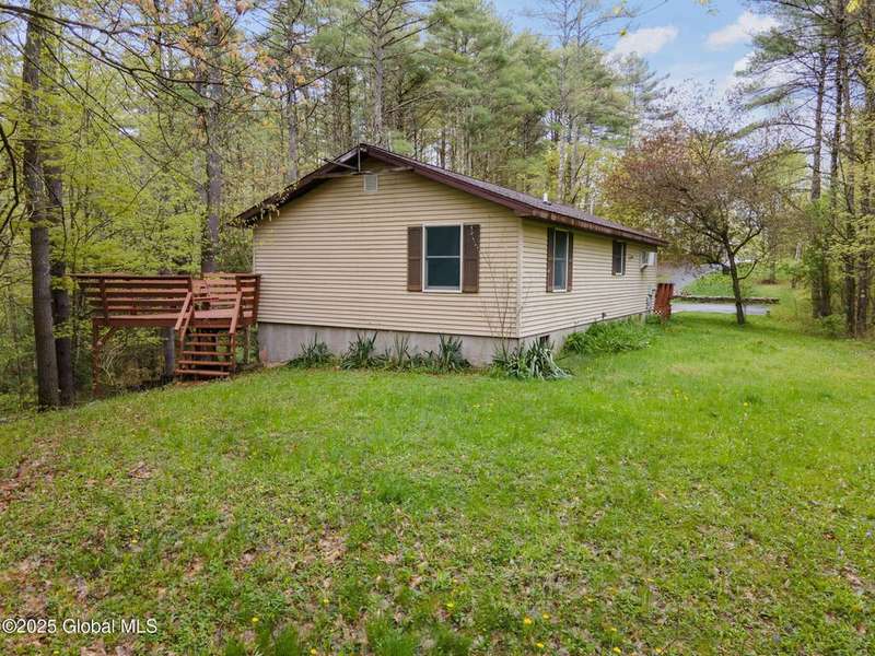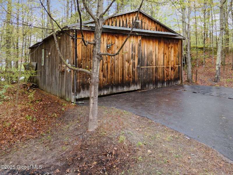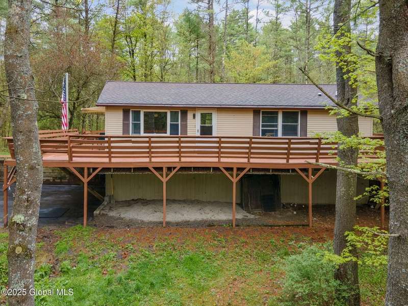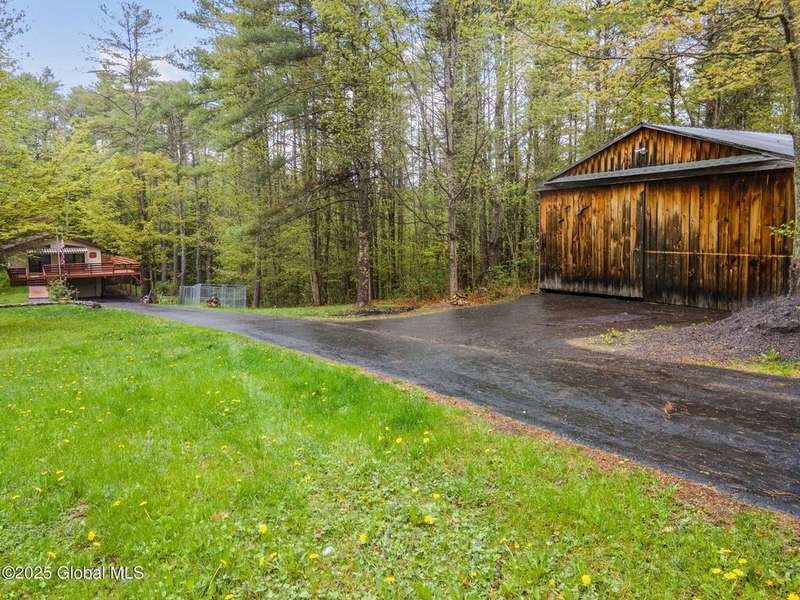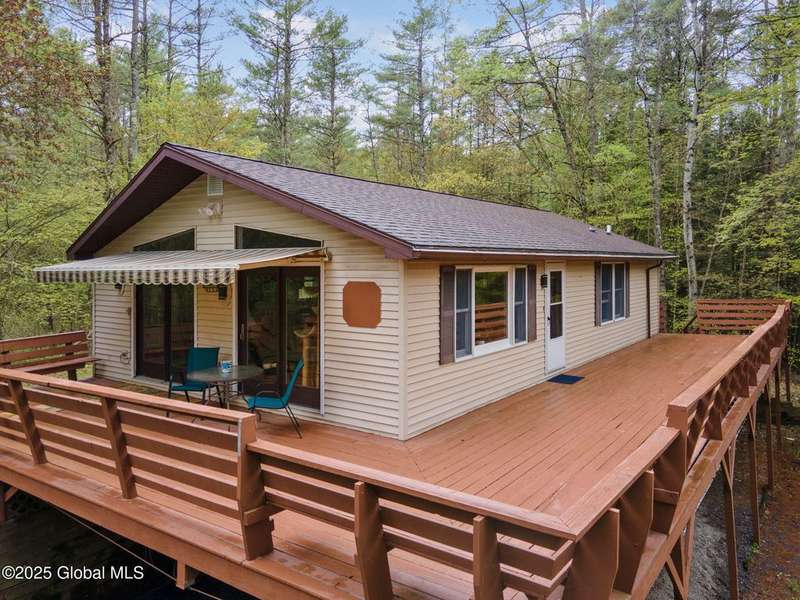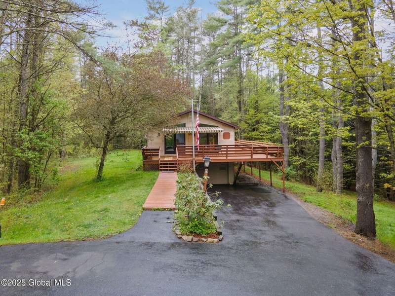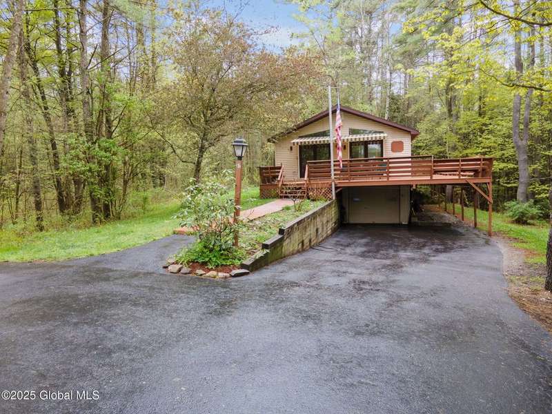 Welcome to your beautiful, secluded slice of wooded paradise! This gorgeous home boasts two bedrooms, two full bathrooms and laundry hookups on the first floor with additional den, office and one-car garage underneath. From the living room, look out over the wraparound deck and straight to the brook traveling alongside the property. On over three and a half acres at the end of a dead-end road, this location is sure to enchant its new owners. 28' x 40' barn will house all your toys. Perfect for a primary home, second home, or short-term rental. Must see to fully appreciate!