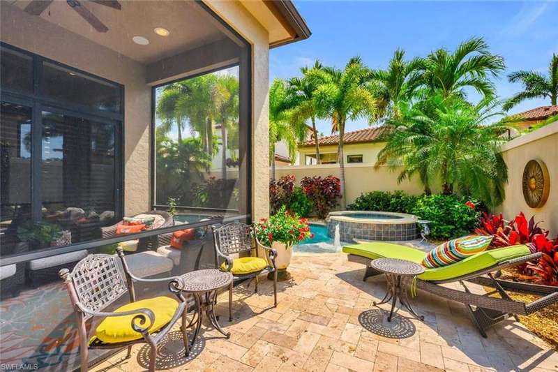Welcome to this captivating 4 bedroom residence featuring the highly sought after sunny SW rear exposure location with tropical charm which imbues a touch of warm ambiance located in the exclusive gated enclave of Cordoba within Lely Resort. Built with attention to detail of high-quality construction including impact wind resistant windows and doors, new HVAC and heat pump with a 10 yr transferable warranty. This home's inviting gathering space features an open floor plan, creating a seamless flow between living, dining, and kitchen areas, perfect for entertaining and everyday living. The large windows flood the space with natural light, enhancing the airy, welcoming atmosphere. It's a space to connect, relax, and create lasting memories. Recently freshly painted walls, ceilings, woodwork and doors in the Great room, kitchen, master bedroom, laundry room, powder room and hallways. Step into your own private paradise where lush tropical landscaping meets luxurious outdoor living while lounging by the salt water pool. Escape to the main bedroom, a beautifully appointed space with ample room for a king-sized bed and furnishings, and a luxurious en-suite bathroom plus a spacious walk-in closet. Enter into the first floor beautiful guest bedroom suite with a Modern Key West motif which also has an en-suite bathroom. The soft lighting options creates a warm atmosphere, perfect for a relaxing evening. A peaceful oasis awaits on the second floor, imagine your guests relaxing in their own retreat, an additional second floor bedroom is versatile as this large space has the potential for various uses, such as a den, reading nook or exercise area. Immediate membership into The Players Club and Spa, no waiting list! Start enjoying the Naples Resort Lifestyle that you have been searching for.
