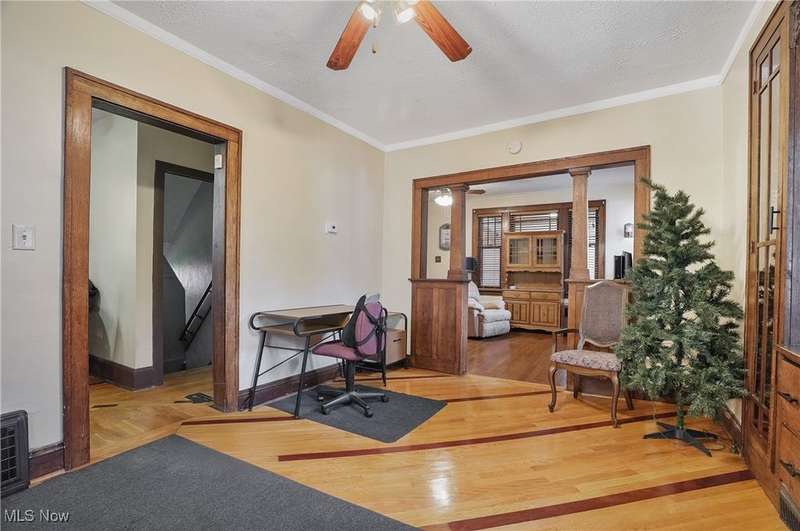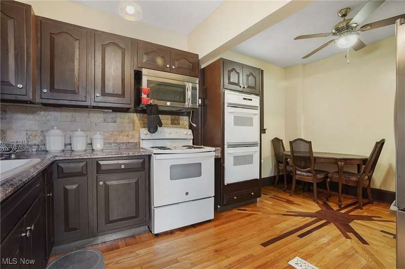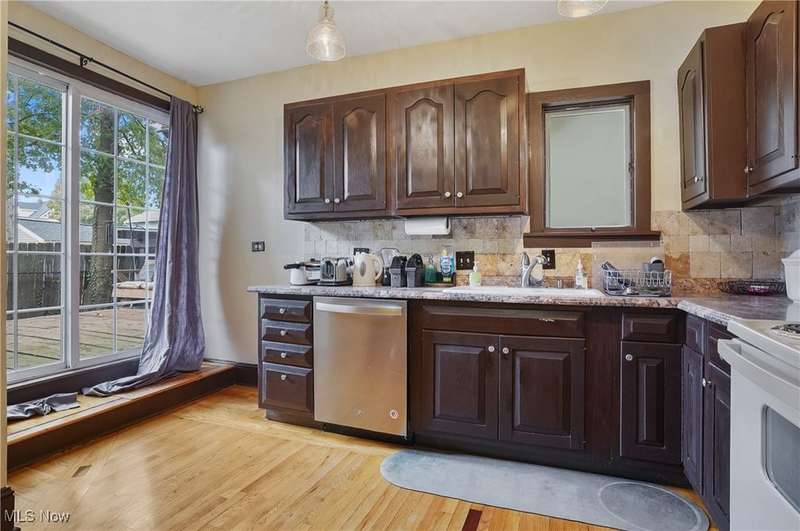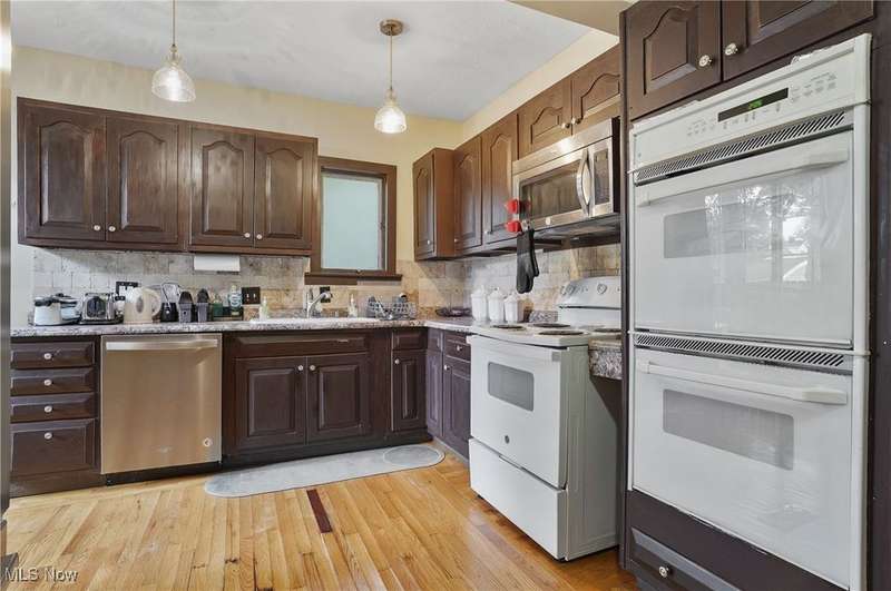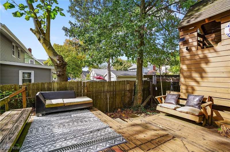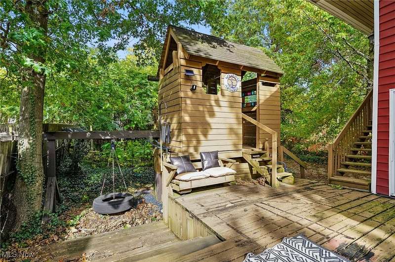 Come see this recently updated, 4 Large bedroom, 4 bath Colonial in a great Goodyear Heights neighborhood. You won't want to miss this well-maintained home, great for living and entertaining. The large eat in kitchen includes 2 wall ovens, a stove, dishwasher, and refrigerator. The cabinets and countertops have been updated and are in excellent condition. Access a large rear deck via a sliding glass door in the kitchen. The beautiful hardwood floors extend into the spacious dining room with built in bookshelves and drawers. The main floor features a half bath and laundry area. There are 3 bedrooms on the 2nd floor with an additional office space. The master bedroom suite on the 3rd floor has its own full bath. The large basement has been divided with rooms that can be used as offices, workout areas, workshop, craft rooms with more storage and a half bath. This home has a 2 car detached garage, fenced in back yard, a fire pit, and a great amount of entertaining and playground area. Schedule your showing today!