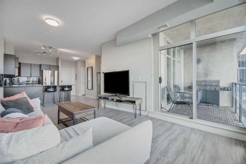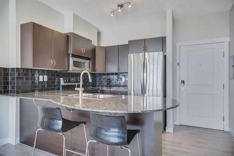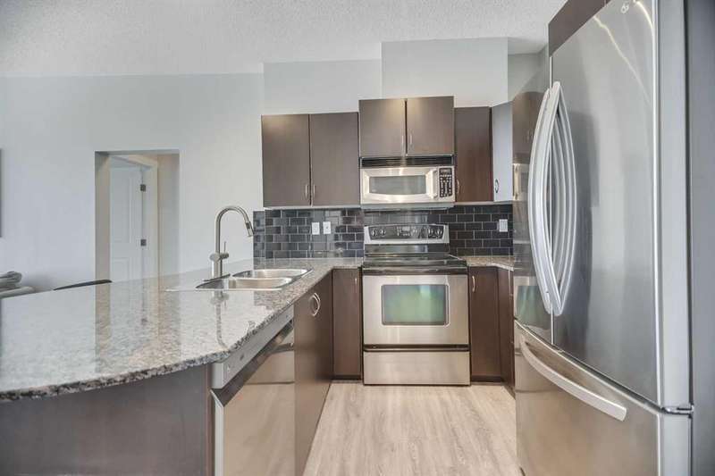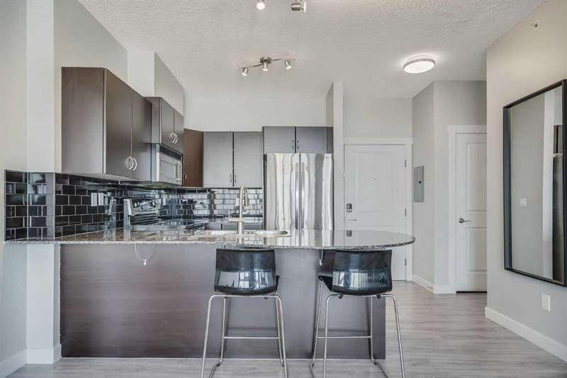 TOP FLOOR LIVING AT GATEWAY SOUTHCENTRE. Just awarded Condo of the Year for Southern Alberta by CCI and for good reason. This modern 2 Bedroom plus Den, 2 Bathroom condo offers nearly 900 sqft of bright, open space with 9 ft Ceilings, almost Floor- to-Ceiling Windows overlooking the peaceful Courtyard. Enjoy a Private Balcony with Gas Line, In Suite Laundry, A/C, Heated Underground Parking, and Storage. Gateway Southcentre is known for its exceptional amenities: Fitness Centre with Studio, 2 Guest Suites, 2 Owner Lounge/Party Rooms Grand Foyer, On-Site Management, and serene Zen Courtyard. Utilities included in the condo fees. Pet Friendly (size restriction) upon board approval. Prime location at Macleod Trail and Anderson - walk to cafes, shopping, amenities, and transit/LRT, with Fish Creek Park nearby. Perfect for downsizers or first time buyers seeking style, comfort, and convenience!