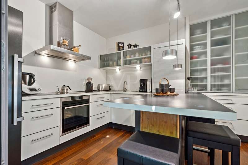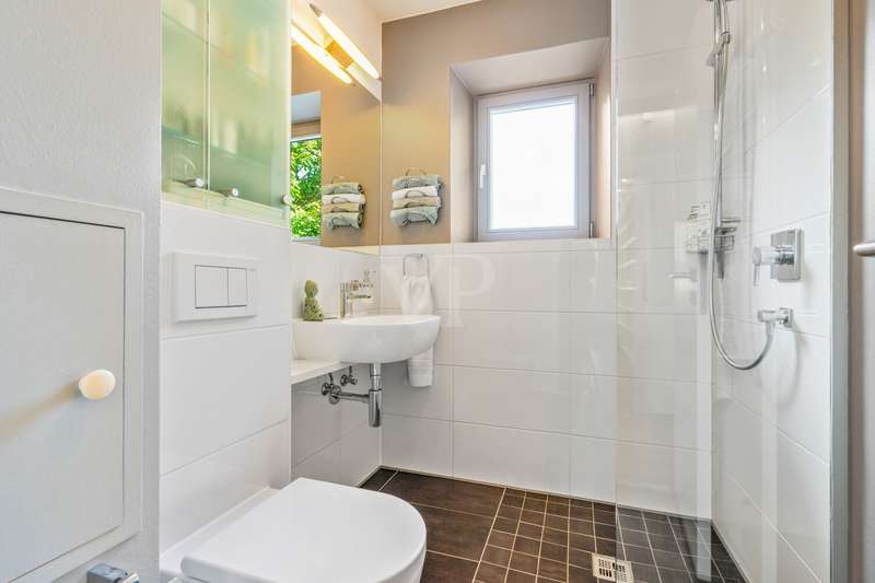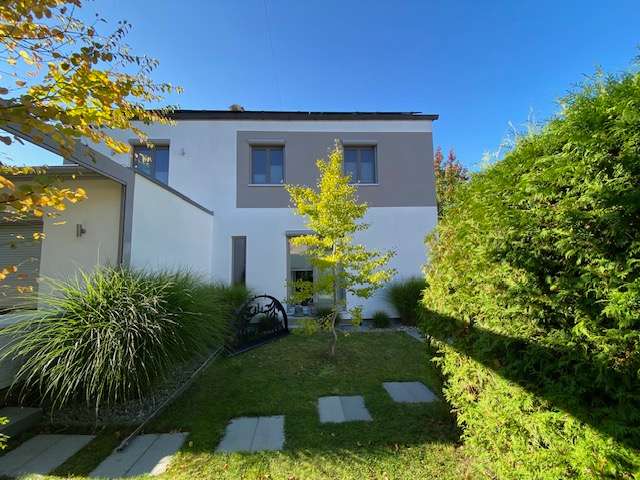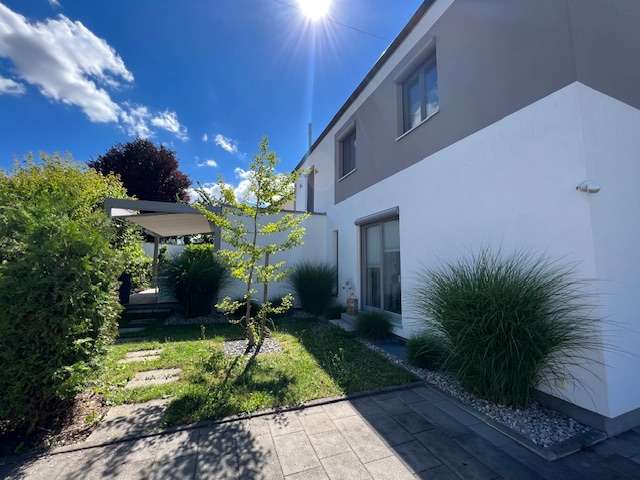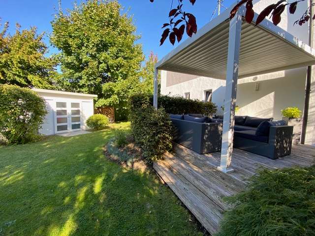 Situated at the end of an idyllic cul-de-sac, this exceptional detached house offers plenty of space, peace and privacy. The property stands on a generous plot and impresses with its well thought-out room layout, modern architecture and high-quality fittings. The house has six spacious rooms, two modern bathrooms and numerous comfortable details that make everyday life of the highest standard. Generous window fronts create a bright, friendly ambience and harmoniously connect the interior and exterior. The modern furnishings meet the highest standards: elegant floors, high-quality bathrooms, lighting concepts, various fixtures, a stylish kitchen and tasteful details give the entire house an exclusive character. Attention has been paid to every detail - both functionally and aesthetically. The house stands on a spacious plot of approx. 900 m², which has been laid out with great attention to detail. The well-tended garden is a true oasis of well-being - ideal for families, nature lovers or anyone who appreciates outdoor relaxation. Three spacious terraces provide the perfect setting for cozy barbecues, social gatherings or simply quiet hours in a private atmosphere. This property combines elegance, comfort and a quiet location with excellent connections to the city center and the surrounding area. A real dream home for people who are looking for something special and value quality, style and quality of life.
