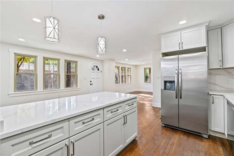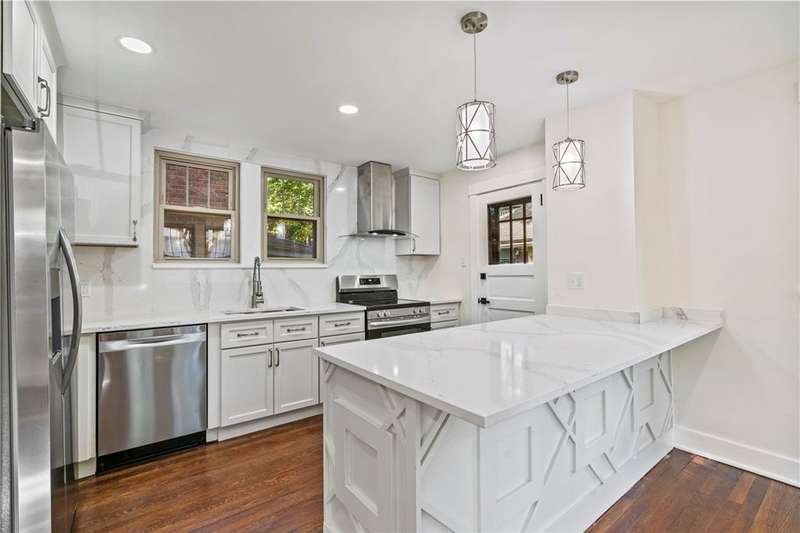 Must See this beautifully renovated gem! Heart of Edgewood on a quiet tree lined street! This grand home is conveniently located w easy access to the city. Endless charm and character- incredibly restored both modern and chic! Kitchen tastefully designed with shaker cabs, quartz tops, tile backsplash, and ss appliances. Full baths with beautifully tiled surrounds! 1st Floor: Entry, Living, Dining, and Kitchen. 2nd Floor: 2 Bedrooms, Laundry Room, and Full Bath. 3rd Floor: 2 Bedrooms and Full Bath. Basement: Plenty of room for storage. Enclosed courtyard in the rear w patio and covered porch for your cookouts. Huge covered front porch to enjoy your morning coffee- peace and quiet at its finest! Shared Drive, 1 Car Detached Garage, AND 2-3 Car Off Street Parking Spaces! Additional upgrades: roof, windows, hvac, flooring, paint, lights, electrical, and plumbing. Spacious with an open/flexible layout- ideal for entertaining, children, or pets. Move right in and make this house your home!