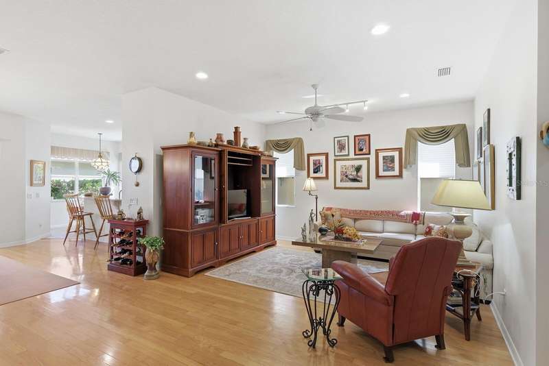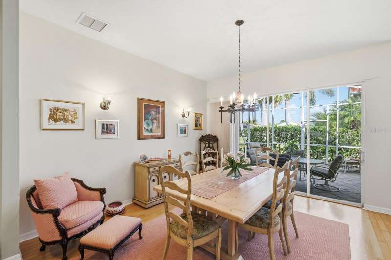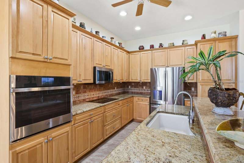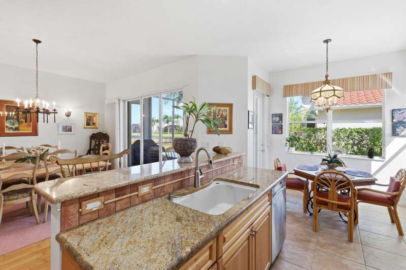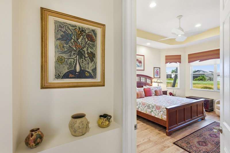 Welcome to your dream home in The Cascades at Sarasota, one of the area's most sought-after 55+ gated communities. This beautifully maintained West Indies floor plan offers over 2,100 square feet of move-in ready living space with 3 bedrooms, 2 baths, and an attached 2-car garage. From the moment you step inside, you will be greeted by soaring ceilings, gleaming inlay tile foyer, and thoughtful upgrades throughout. The heart of the home is the kitchen, where 42" cabinetry with roll-out shelving, Kashmir Gold granite countertops, custom backsplash, and GE Profile appliances make cooking and entertaining a delight. The open floor plan is designed for entertaining, comfort and privacy, with the Owner's suite and guest rooms thoughtfully separated. From the primary suite, dining room, breakfast nook, and extended screened lanai, you will enjoy tranquil partial water views, the perfect backdrop for your morning beverage or evening gatherings. The spacious primary suite offers true luxury with a custom built-in closet, dual sinks, upgraded cabinetry, and a large walk-in shower with bench. Additional highlights include a freshly painted exterior, a NEW Trane HVAC, energy-efficient wall insulation, easy-close accordion hurricane shutters, and custom window treatments, all adding peace of mind and year-round comfort. Step outside to your extended paver lanai and patio, surrounded by tropical landscaping and serene lake views, a wonderful space to relax and enjoy the Florida backdrop. Living in The Cascades at Sarasota means more than just a beautiful home, it's a vibrant lifestyle. Residents enjoy resort-style indoor and outdoor pools, a state-of-the-art fitness center, a 25,000 sq ft clubhouse with ballroom, Har-Tru tennis courts, pickleball courts, bocce, and an abundance of clubs and activities. All of this comes with the convenience of being close to downtown Sarasota, airports, shopping, dining, golf, and the world-renowned beaches of Siesta, Lido, and Longboat Key. Do not miss your chance to own this exceptional home that combines elegance, comfort and an active lifestyle, all in one perfect package.