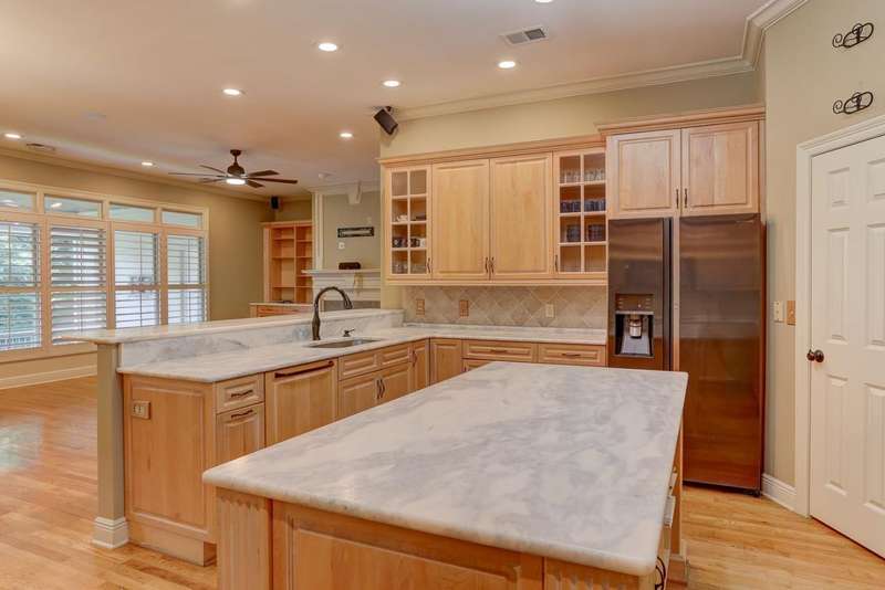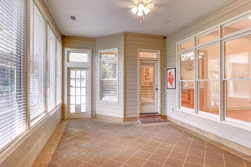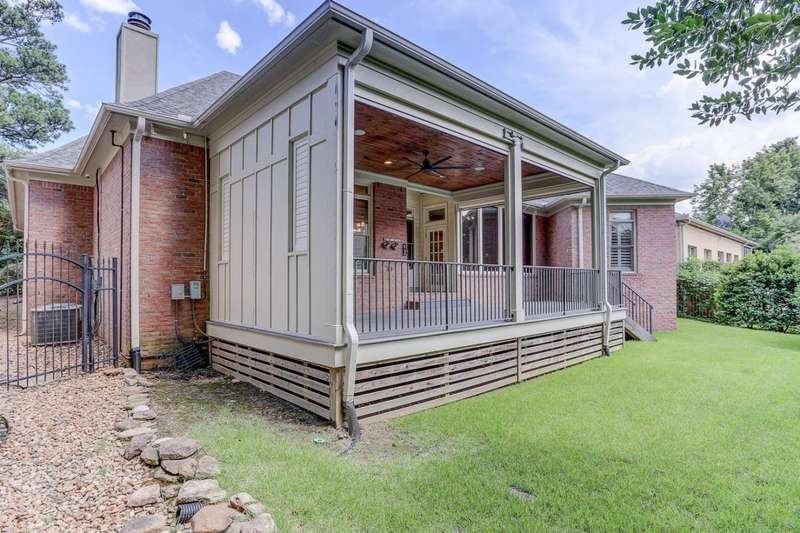 GUARDED AND GATED NEIGHBORHOOD OF SOUTHWIND. 24/7 guards at front and back gate! NO CITY TAXES! 3 spacious bedrooms on the main floor, accompanied by 2.5 baths, while the upper level hosts an inviting game room with a full bath and huge walk-in closet. The back covered patio is equipped with power shades for enclosure and built-in heaters, creates an all-season outdoor haven, ideal for enjoying the outdoors year-round. Additional covered/enclosed porch!Split bedroom plan. Huge keeping room w/ fireplace. Primary bedroom has separate cedar closet, 2 other closets, 2 vanities, steam shower and access to covered back porch! THREE CAR GARAGE! Loads of storage.Laundry rm w/space for fridge. Fenced yard-Easy to maintain. Walk-in wet bar. Split plan. Huge kitchen with loads of cabinetry. Move-in ready. NEW ROOF