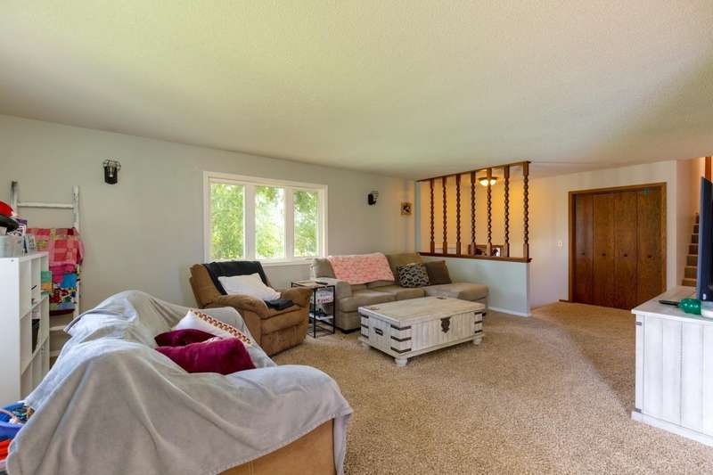 This ideal acreage is near Hiway 20 and a short commute to the Cedar Valley. With over 1,800 sq. ft. of living area, it features a flexible layout, perfect for working from home, entertaining or relaxing. The open floor design showcases a large living - dining - kitchen area with sliders to a care-free composite deck. A few steps to the upper level will offer you three spacious bedrooms and full bath. A few steps down will bring you to the lower entry with bedroom, laundry/storage area and 3/4 bath. The lower level features a family room, bedroom and storage room. Two car attached garage plus a 42 x 72 garage shop for all the extras. New siding and Pella windows.