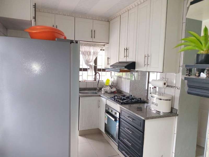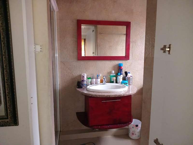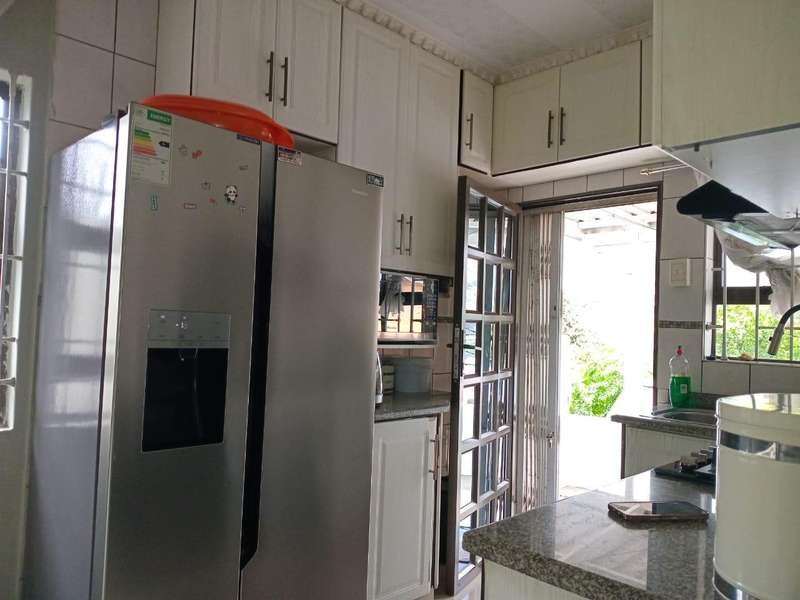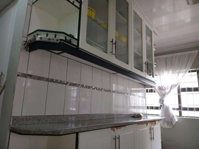 As you enter the house from the front patio, you step into a sweeping lounge. The main bedroom is conveniently located just behind the lounge, and the dining room is situated across from it. A few stairs lead down from the dining room to the kitchen, which boasts ample cupboard space.