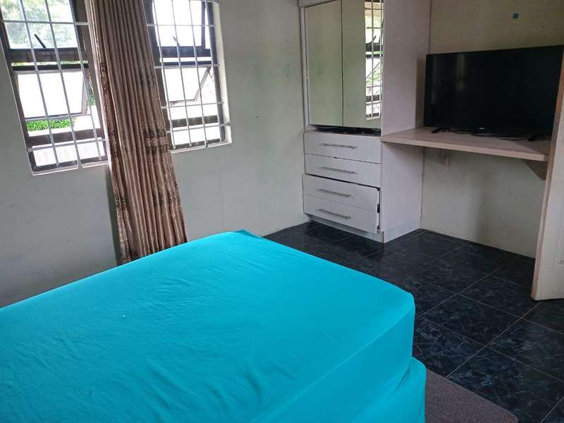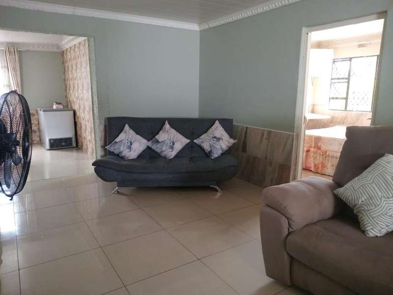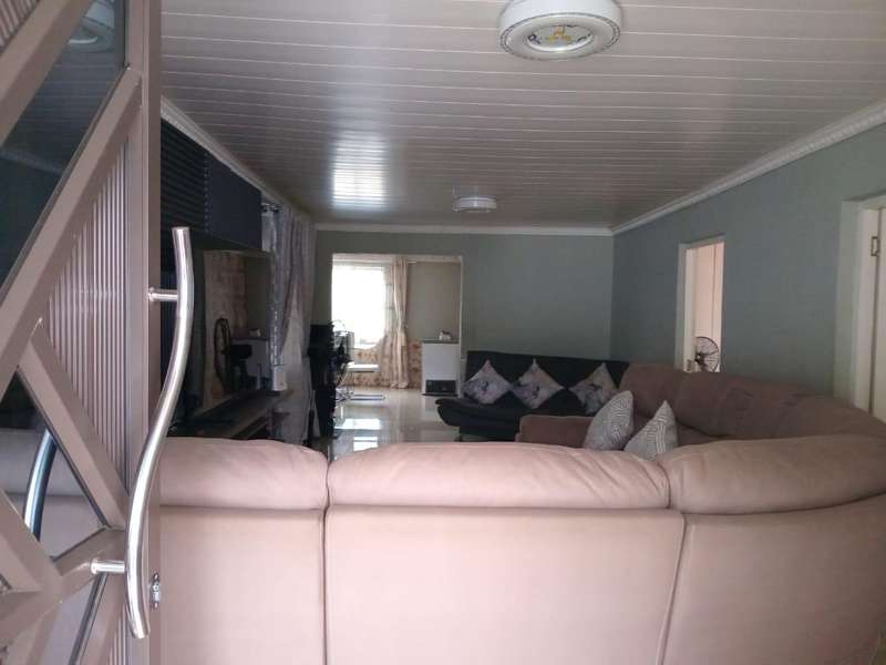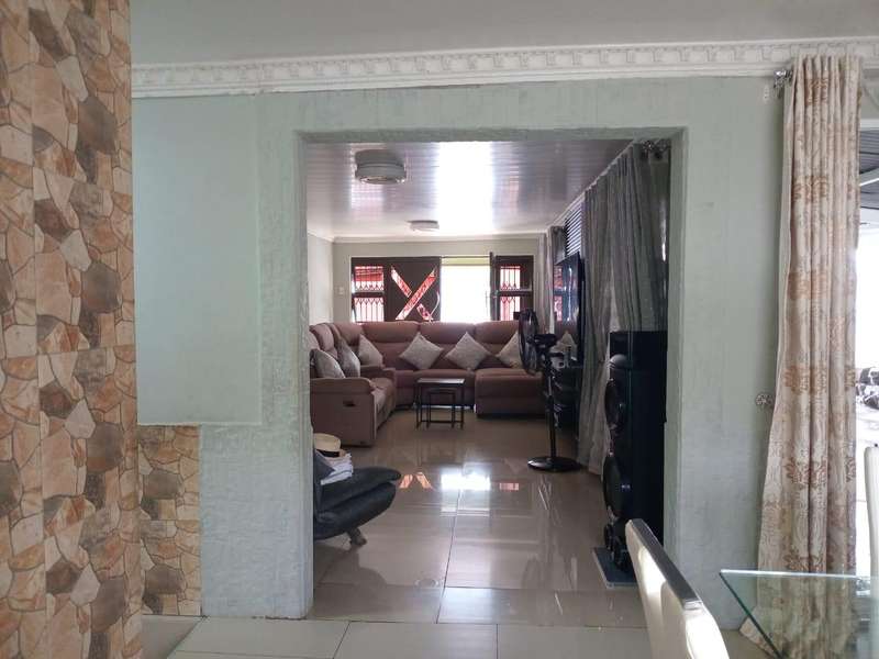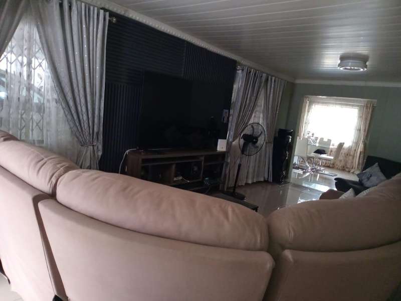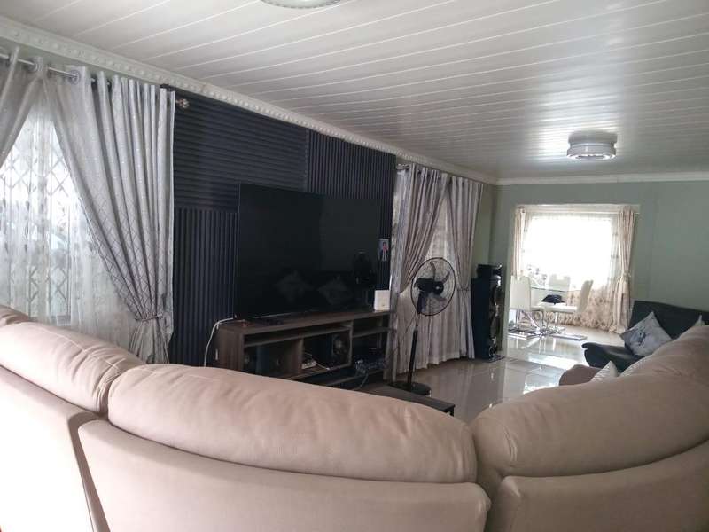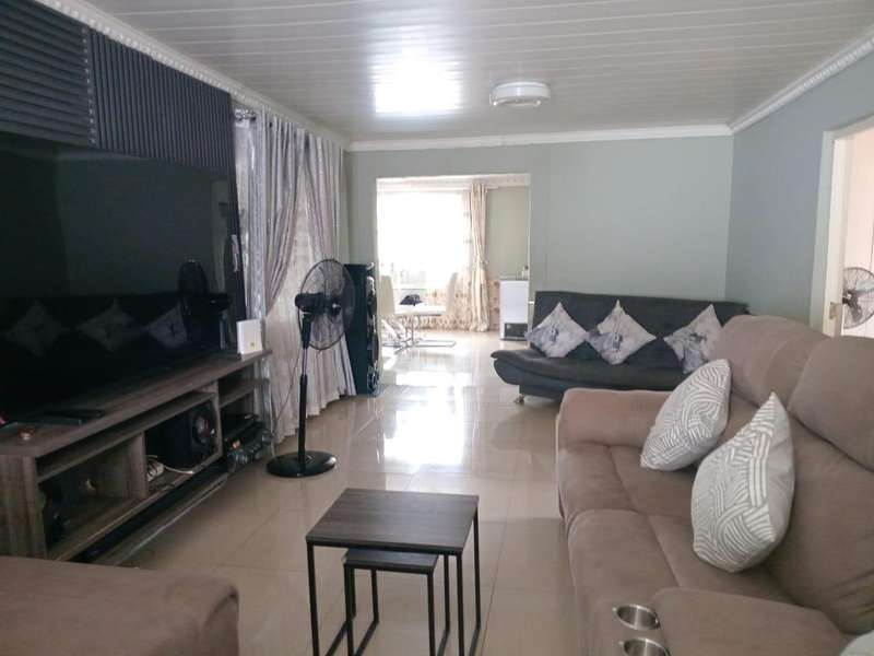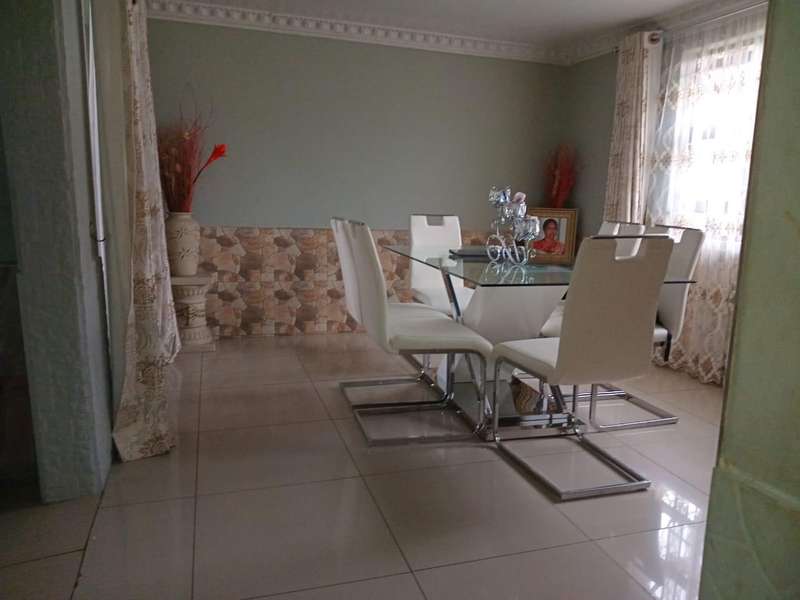 This expansive house features four bedrooms, a lounge, a separate dining room, a kitchen, and two bathrooms. The generously sized lounge includes a large, modern TV stand.