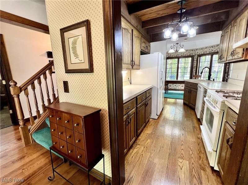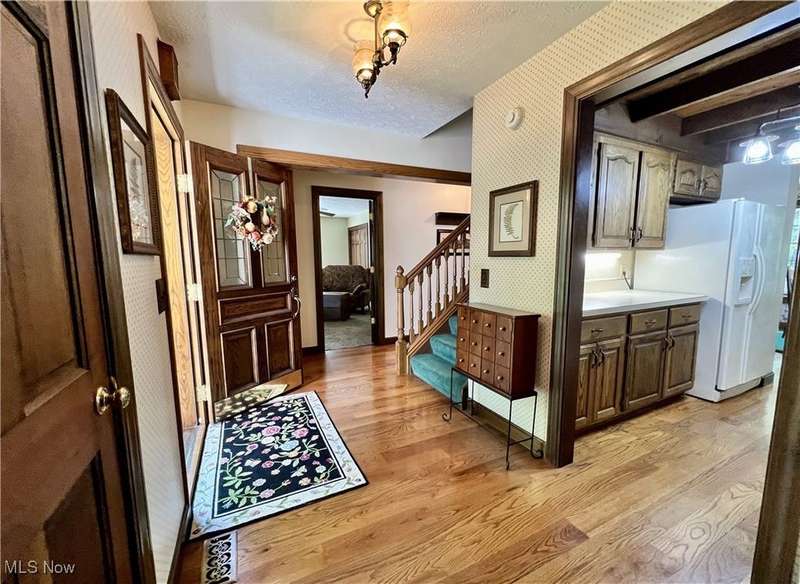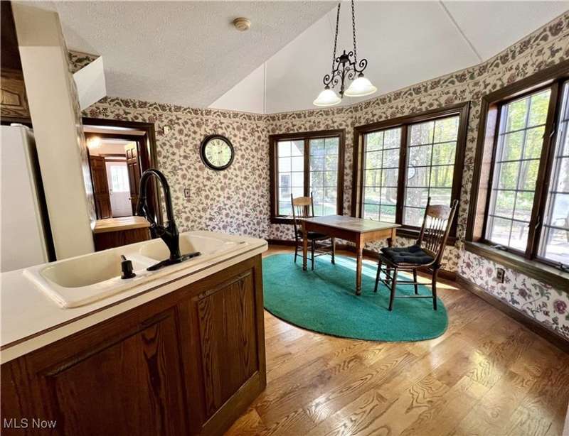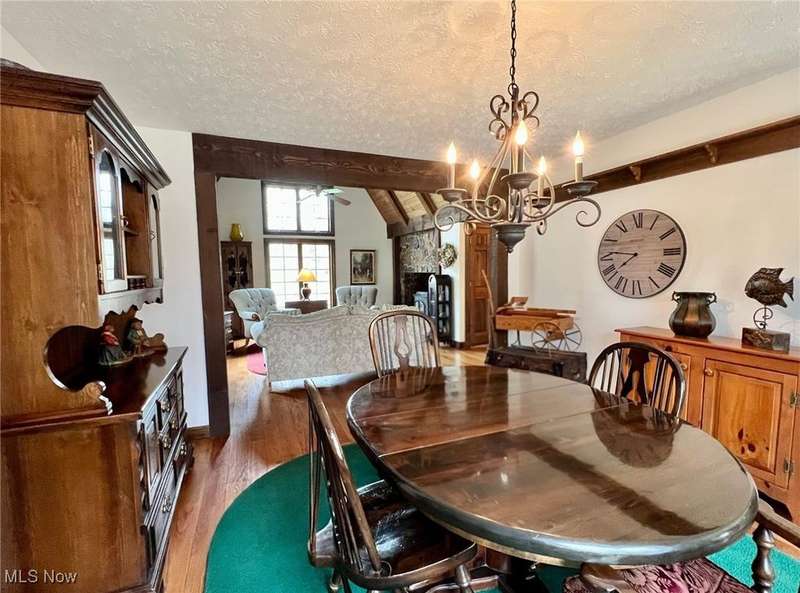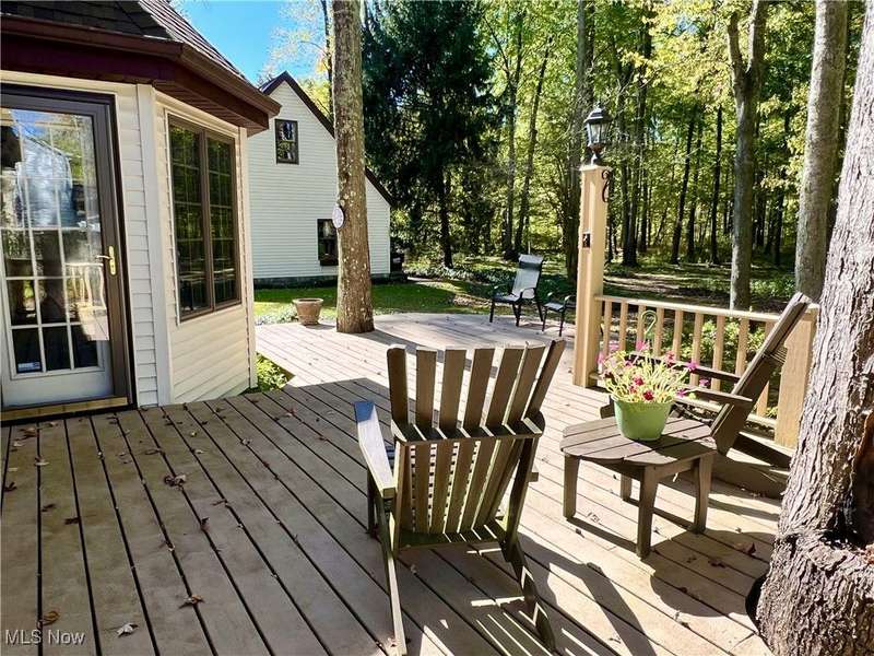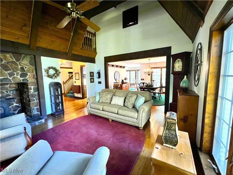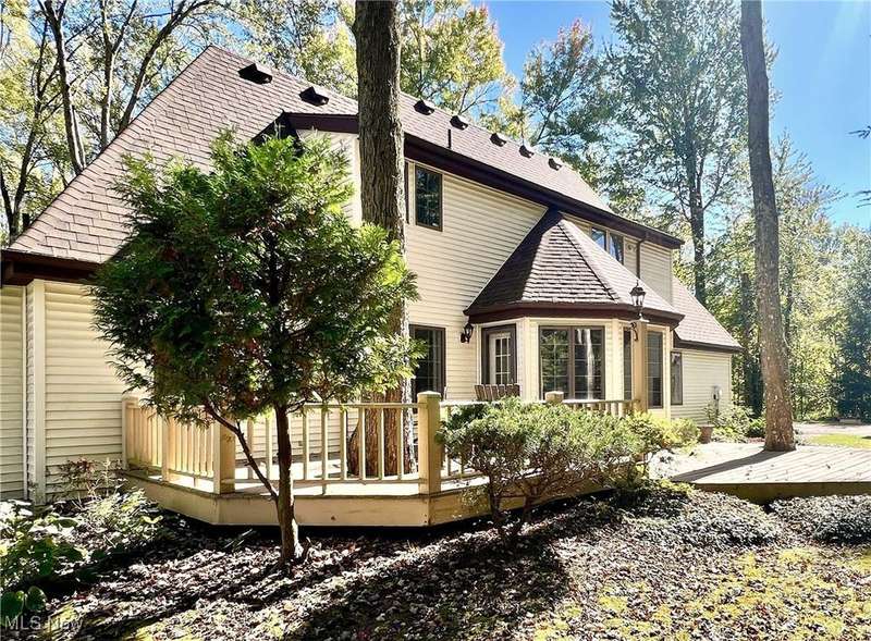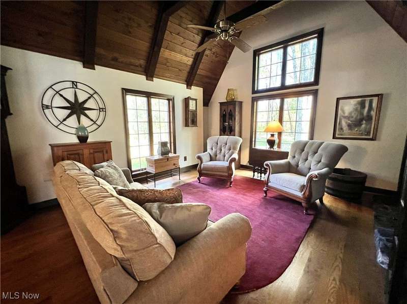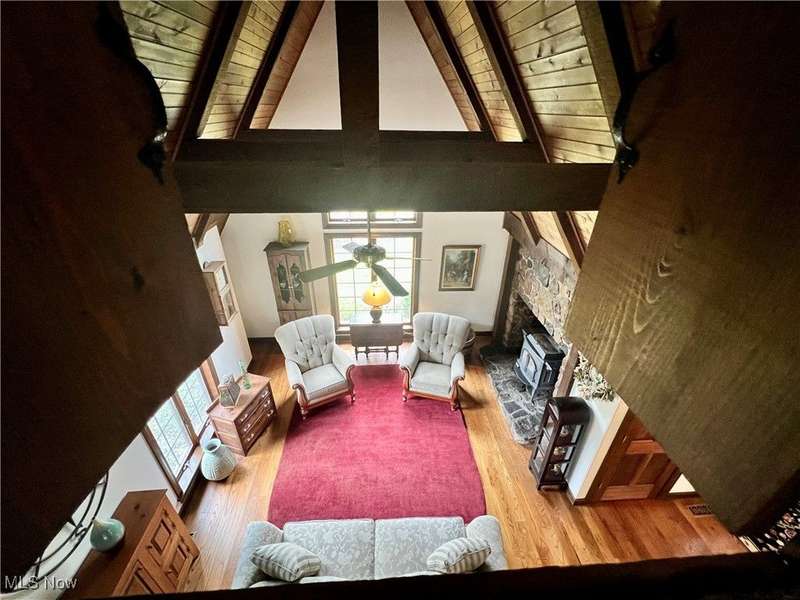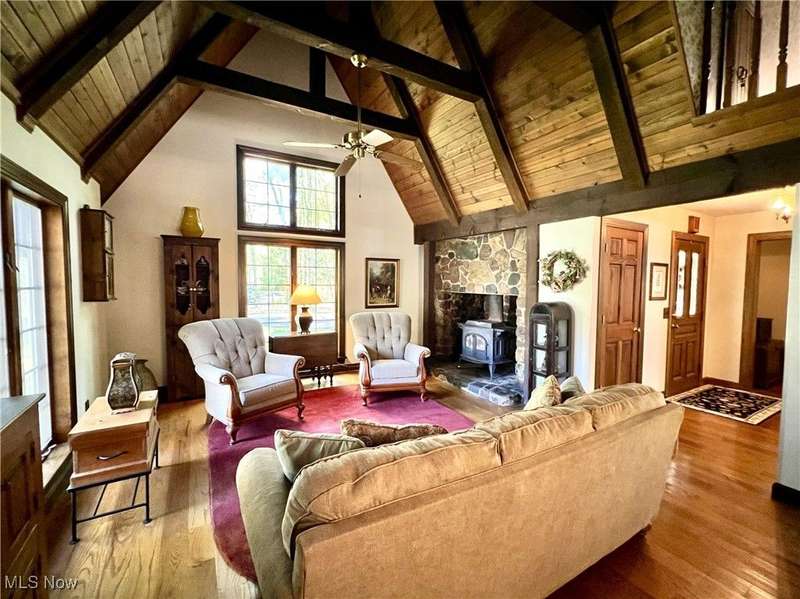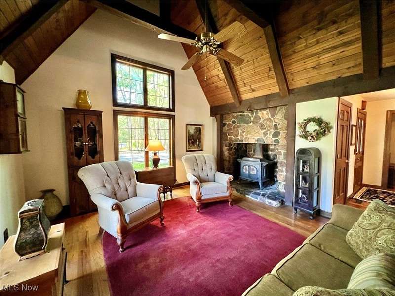 Live your Country English Cottage dream! Once in a storybook lifetime opportunity to own this spectacular home in Valley City. Beautifully designed to fulfill your dreams of country living close to all amenities. This spacious 3-4 bedroom, 2 full bath cottage on 2 acres includes an oversized 2+ car detached garage (672sqft) with a walk-up second floor heated work shop (flex space). The home is loaded with cottage charm, including a beautifully detailed cathedral ceiling with wood beams and a stone wood burning fireplace igniting only your imagination. The main entrance greets with a beautiful stone elevation and a solid wood entry door. Floors are solid hardwood. The first floor includes a back mudroom entry that leads to a home office. 2 flex rooms on the first floor can be interchangeably used as bedrooms, den. The second floor includes 2 large bedroom spaces and one full bathroom. The basement level is a full foundation crawl space approx 4' high (great storage and access). A spacious wood deck extends the charm of the home, overlooking a spacious yard with mature trees and large shed. Recent updates and upgrades: Roof and gutters 2021; HVAC 2012, Basement cistern holding tanks 2025. The property is set among other beautiful country homes. Lovingly maintained!
