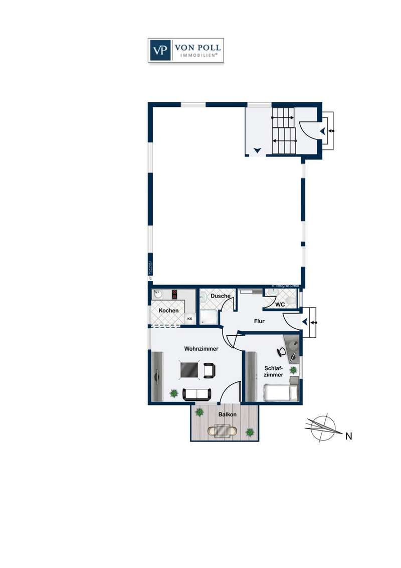 This attractive 2-room apartment is centrally located in Fellbach on the mezzanine floor of an apartment building with a total of four residential units. The living space is approx. 36.5 m² and offers a comfortable living atmosphere with its well thought-out room layout. The apartment is located in the extension built in 1995. The living area offers enough space for a cozy sofa corner and a dining area. A highlight is the balcony, which is accessible from here and overlooks the communal green area, where you can enjoy the sun. The open-plan kitchen is functionally designed and makes practical use of the available space. The bathroom was partially modernized in 2022 and has a walk-in shower. The cellar room, which belongs to the apartment, offers additional storage space. The communal laundry room rounds off the offer. The separate entrance to the apartment provides additional privacy. Another advantage of this property is the covered carport. Due to the central location in Fellbach, you benefit from an excellent infrastructure. All daily amenities and public transport are within easy reach, which makes everyday life much easier. The apartment is suitable both for owner-occupation and for renting out. The furnishings in the apartment can optionally be taken over completely. The solid construction of the building in combination with the modernization measures carried out make this offer particularly attractive. We cordially invite you to view the property in order to gain an impression of its advantages.