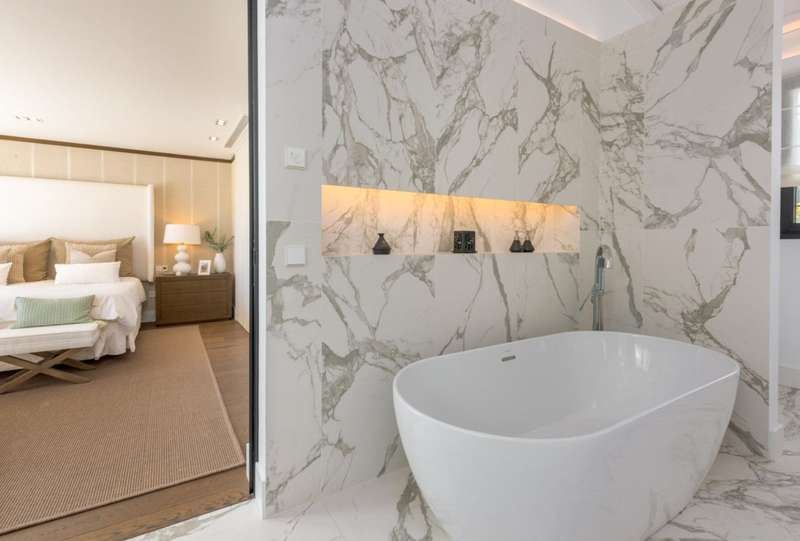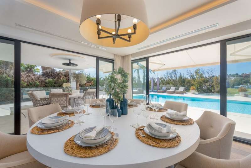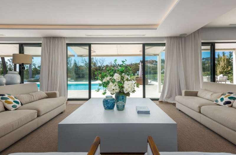 Welcome to the ultimate Marbella masterpiece — a show-stopping, seven-bedroom trophy estate set frontline to the golf course in the prestigious heart of Nueva Andalucía. This is not just a home — it’s a lifestyle statement for those who demand nothing but the best. Step inside this immaculate and sprawling mansion, where every detail has been curated for refined living. From grand entertaining spaces to ultra-private retreats, this home has it all — and then some. The Main Residence Spread across two expansive levels, the main house features seven luxurious bedroom suites, including a primary suite worthy of a five-star resort. Think: private lounge, dual dressing rooms with custom millwork, spa-style bath with double vanities, walk-in rain shower, freestanding soaking tub, and your own private terrace with Jacuzzi overlooking the fairways. Yes, it's that good. Enjoy an enormous formal living room and dining space, plus a chef’s dream kitchen with bespoke cabinetry and top-tier appl