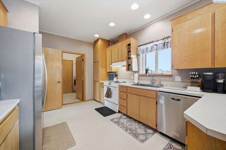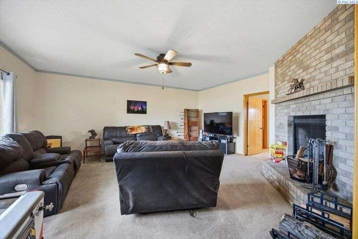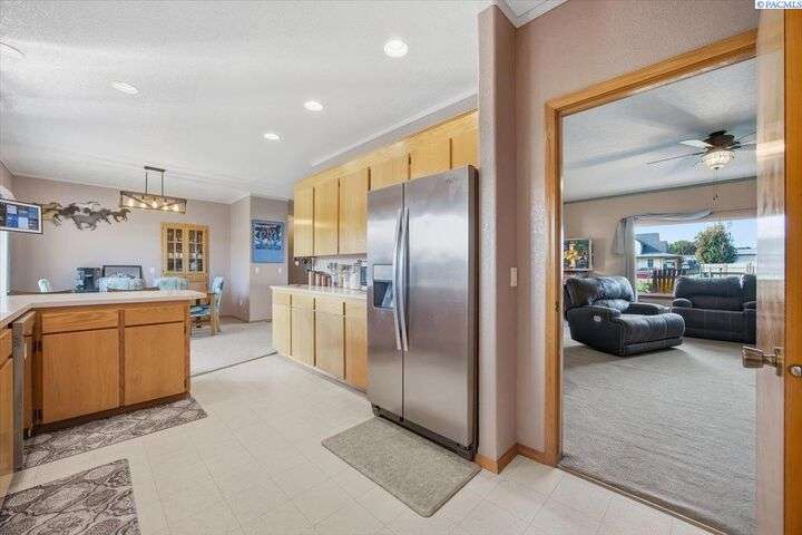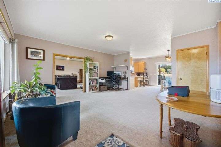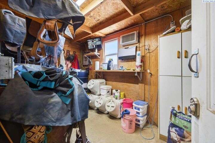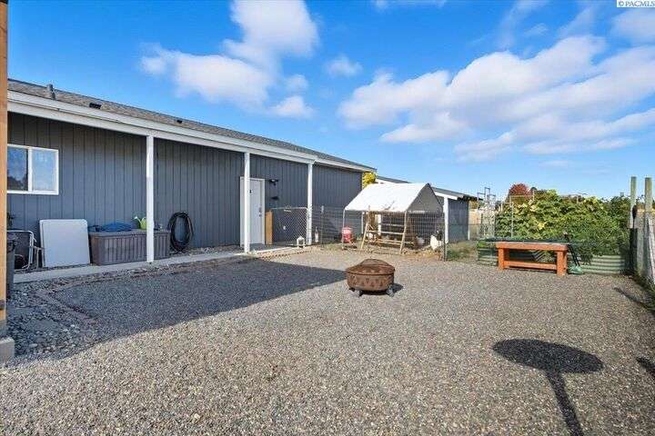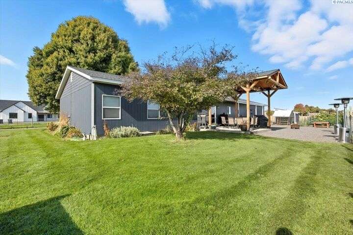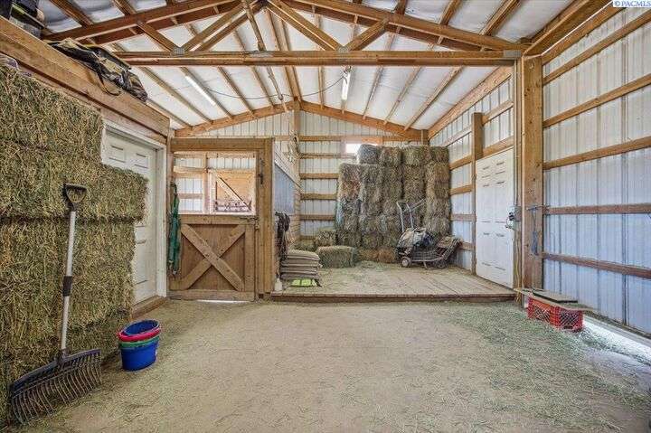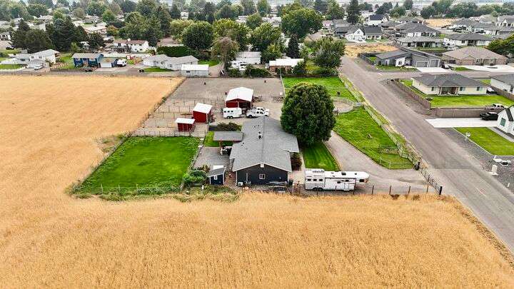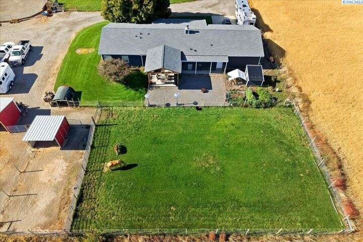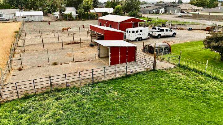 MLS# 288254 The Trifecta: A beautiful home, on sub-dividable acreage, situated within the desirable donut hole of Pasco. Ideal for equestrian enthusiasts and hobby farmers, this 1.5-acre property offers exceptional versatility. The meticulously maintained rambler provides an optimal layout, featuring three bedrooms and two bathrooms, with both a separate family room and living room to ensure efficient traffic flow. Entry to the fully fenced premises is secured with an electric gate operated by keypad , cellular and remote.A spacious utility/mud room adds further practicality, while a modern HVAC system is managed through NEST thermostats making it comfortable throughout the home. The oversized garage is equipped with its own mini-split heating and cooling system. Bedrooms are generously sized, with the Owner’s suite offering dual walk-in closets. All appliances are included with the sale. It is an Alexa smart home so most switches, lights, cameras, door locks, HVAC etc are app controlled.The backyard patio, enhanced by a majestic beamed pergola making you feel like you are in a mountainside resort, presents an inviting space for morning coffee and relaxation. Raised garden beds and a custom-designed chicken coop (with up to 19 chickens included if you like) complement the outdoor amenities. Security features include a 2 camera systems Lorex/Ring for a total of 22 cameras covering the entire property and electronically coded exterior doors for added safety. Roof was redone in 2024 with 50 year GAF shingle warranty. More extras: 30 amp RV service, 50 amp welding service, 70amps to barn and App controlled UGS. Equine facilities comprise entirely fenced and cross-fenced pastures, a five-stall barn with an electric fly sprayer in the shelter area, a lighted round pen, and a separated lighted arena for riding and exhibitions. The barn benefits from dedicated power and water supplies, including its own hot water heater, a hose and spigot for arena summer dust management, and frost-free spigots for winter use. The temperature-controlled tack room, supported by its own mini-split HVAC, safeguards food, medications, and precious equipment.Enjoy proximity to urban conveniences along with the tranquility of rural living. You just couldn’t ask for more so close to the city yet feel like you are hundreds of miles away from civilization. With subdivision potential, this property also provides valuable future opportunities.