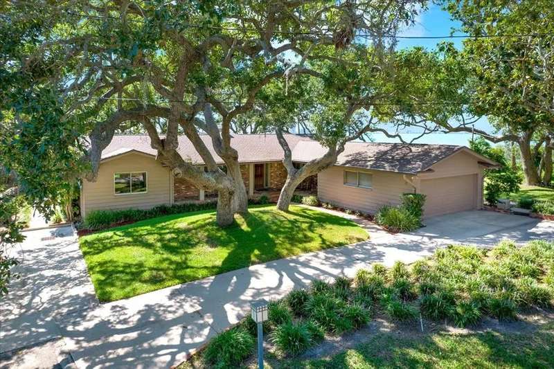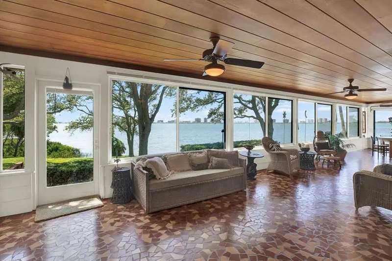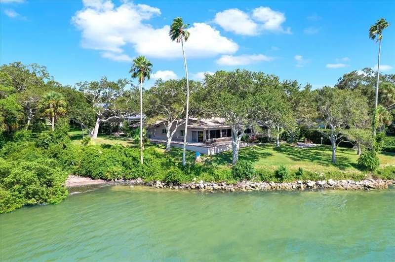 Bay-Front Home in Belleair on Rare Coastal Bluff – Waterfront views extending to Florida’s Gulf Coast! One of a handful of homes nestled on a private gate-able drive offering extraordinary privacy, this classic one-story waterfront beauty sits 14 feet atop a natural bluff overlooking Clearwater Bay. Waterfront - no flooding in 40-years ownership! Abundant windows frame mature trees and fill the home with natural light. Breath-taking views bring outdoors in, a seamless connection to surrounding natural beauty. Nearly 3000 SF, concrete construction, three bedrooms, three full and one half-bath, storage galore, living room with beautiful natural fireplace, huge dining room. Bright and spacious open-concept home perfect for entertaining. Air-conditioned terrazzo sunroom opens to patio deck with unique water views you must see to believe. Perfect for relaxing or entertaining, cooled by bay breezes, enjoying panoramic water views, stunning sunsets and entertaining wildlife...dolphins, otters, eagles and more. 720 SF basement(so rare in Florida!) with endless possibilities; playroom, gym, storage, man cave, etc. Riparian rights ensure continued enjoyment of a myriad of water activities from your own backyard including kayaking, fishing, paddleboarding and more, perhaps your own dock! Bordered to the south by green space and to the north by more than five acres of water-front park land, this property provides a rare level of privacy and seclusion. Enjoy peaceful walks along the water, surrounded by a symphony of bird songs beneath a canopy of majestic oaks. Belleair offers a small-town atmosphere with sophisticated conveniences … quality restaurants and shopping, town recreation center and prestigious Pelican and Belleair Country Club are within two miles, and Florida’s stunning Gulf Coast beaches are just minutes away. Belleair’s long history, civic pride and year-round community events make it one of Tampa Bays most sought-after neighborhoods. All this and just thirty minutes from TPA. Don’t miss this opportunity to own an incredibly unique piece of paradise.
