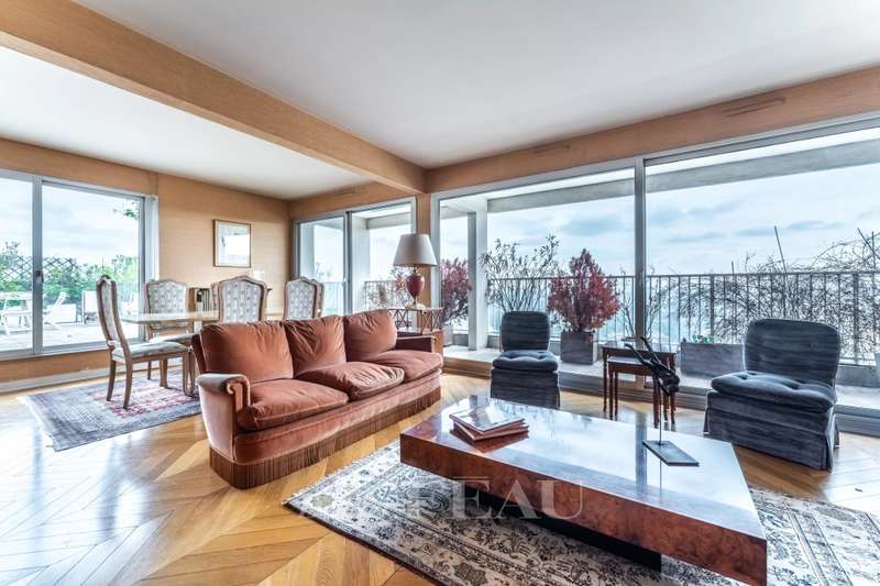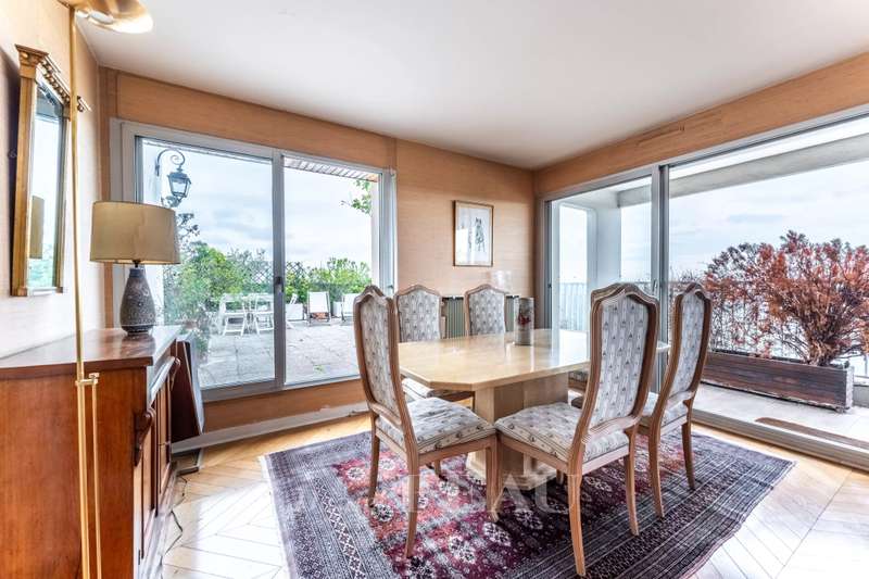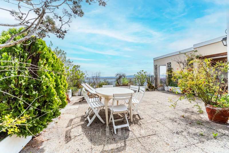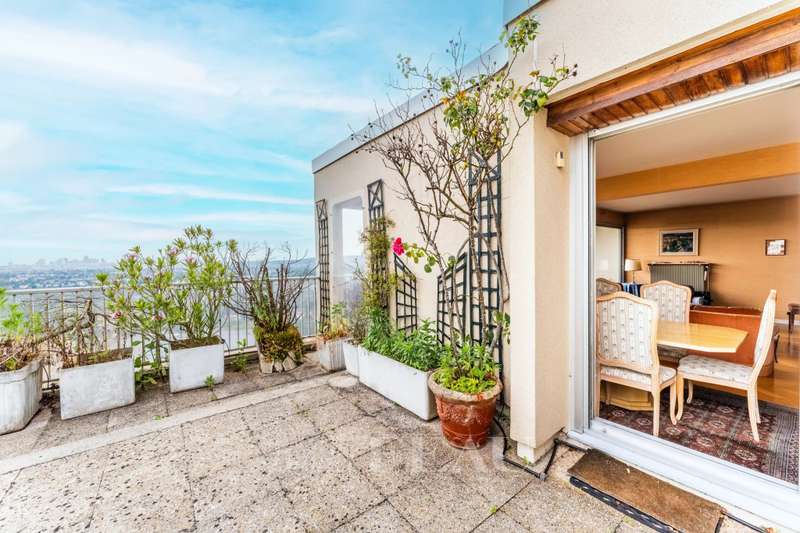 Sole Agent. This 121 sqm apartment with a near 60 sqm south-facing terrace commanding a panoramic view is on the 7th and top floor of a relatively recent building. It includes an entry with a fitted closet, a double living/reception room accessing a balcony and the terrace, a kitchen (open-plan would be possible), four bedrooms, two bathrooms and two wc. Ample fitted storage space. With two parking spaces and a cellar. The building is equipped with a lift up to the 6th floor. In a convenient location near the shops, the schools and the station (Paris Saint Lazare 40 minutes).