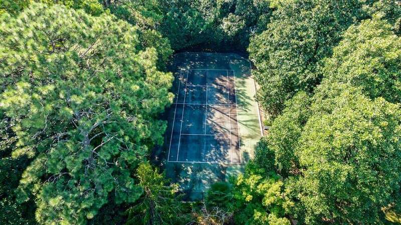 - Tennis court and two-car garage