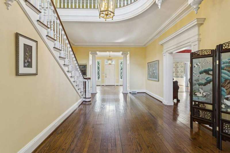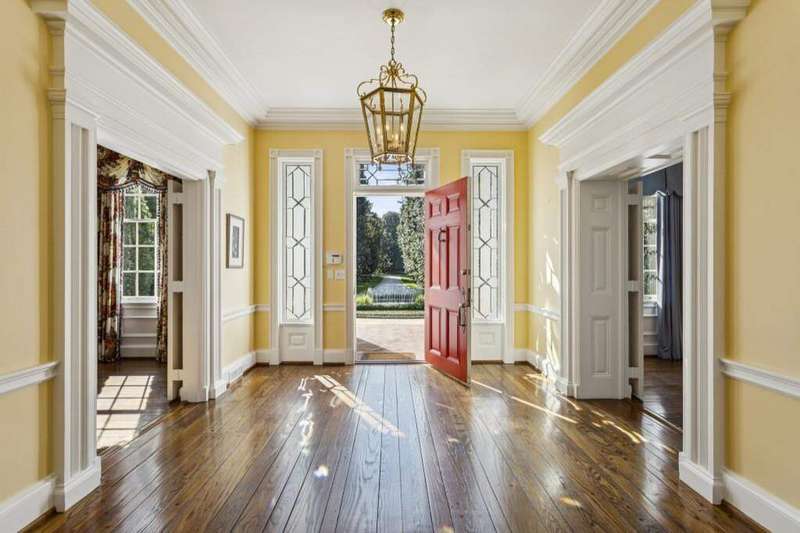 - Long private driveway with magnolia trees