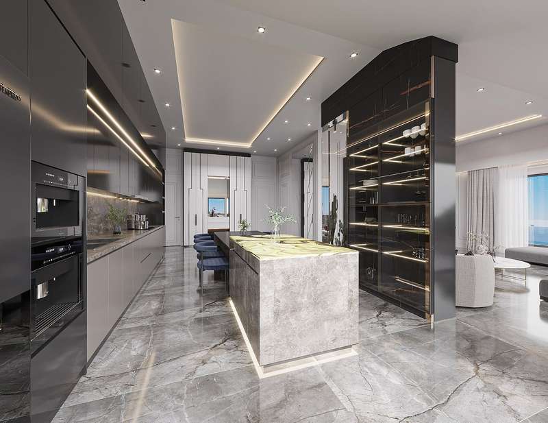 Each apartment is constructed with top-quality materials, with every detail carefully prepared for the buyers’ convenience and comfort. These stylish and spacious apartments include granite kitchen countertops, MDF furniture, a central satellite system, steel doors, and PVC windows and balconies.