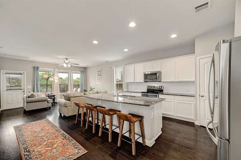 Fridge, Washer, Dryer included. Charming and serene two-story, tucked away, with easy access to the best of south Austin. Menchaca Entertainment District just around the corner. Trail access directly to Mary Moore Searight Park. Home has been lovingly maintained, and boasts an open floor plan flexible to your needs. Enjoy the private back patio, with no neighbors behind, and seamlessly transition into the downstairs living space, kitchen, and primary retreat. There are two living areas, plus a multi-use front room. Ample shopping, dining, parks and recreation nearby.