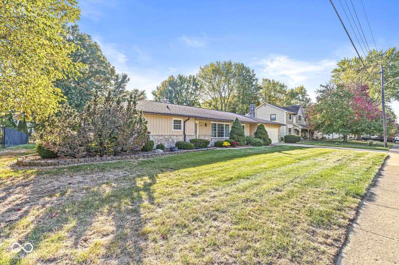 Who needs an immaculate ranch with a basement in the heart of Carmel? This one owner gem filled with custom touches is the one! Beautiful hardwood floors in the living room and dining room. Crown molding throughout the entire home, including the bedrooms! Family room boasts a beautiful stone fireplace with built-ins. The relaxing sunroom overlooks a park like backyard. This lovely home sits on .37 acres and is a four minute walk to Woodbrook Elementary school Spotless basement features a cedar closet, painted floors and utility sink. Finished garage, irrigation system and so much more!