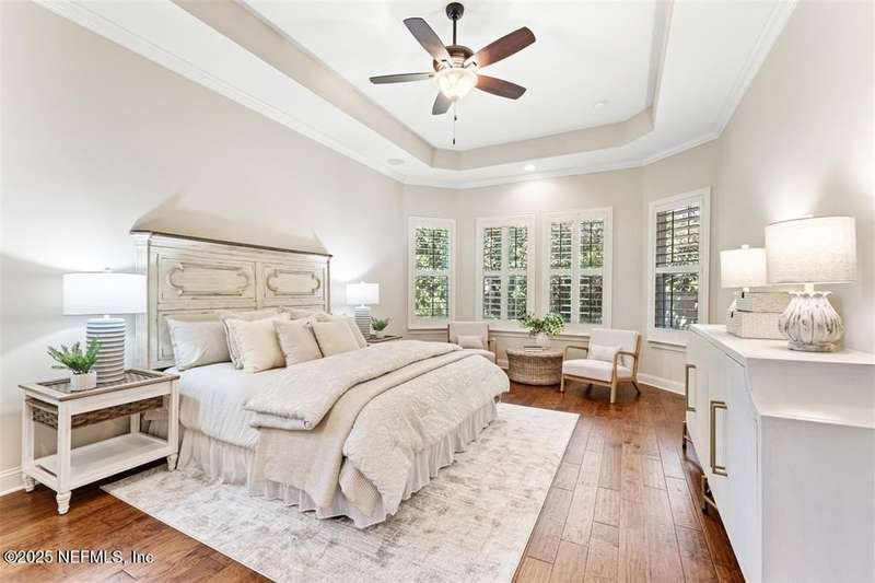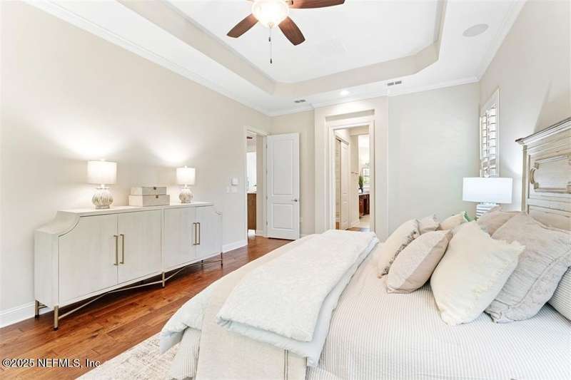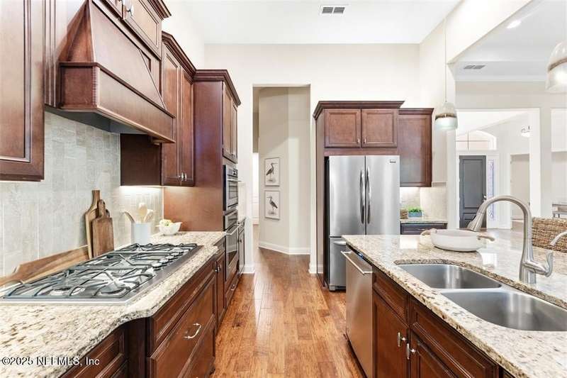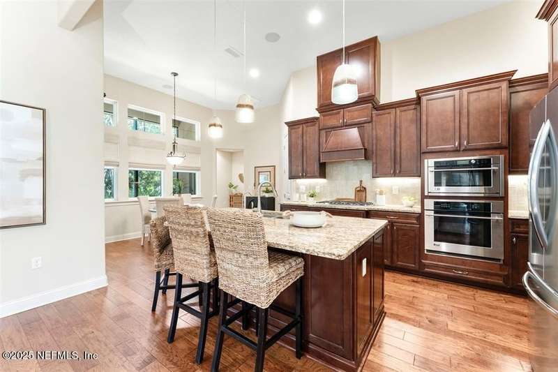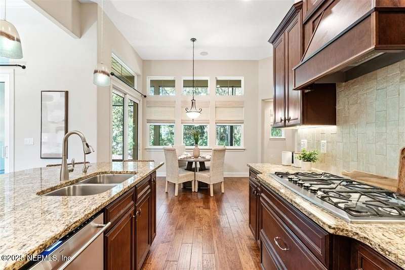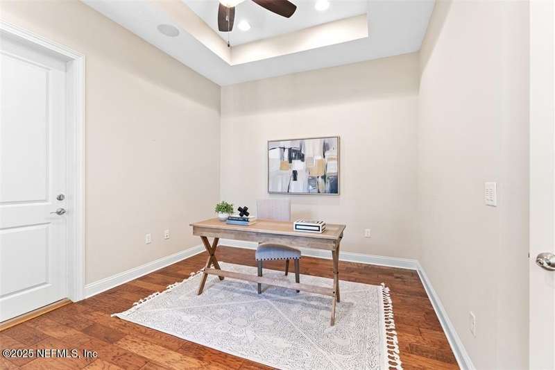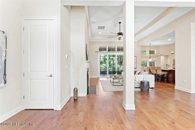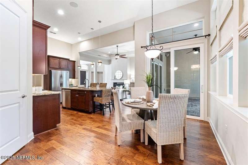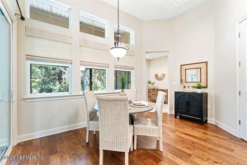 A SHORT STROLL FROM THE BEACH this beautifully maintained 4-bed/3-bath home nestled within gated community of The Preserve at Summer Beach. This one-level residence offers easy, low-maintenance coastal lifestyle with inviting open-concept layout & split-bedroom floorplan. Enjoy rich wood flooring throughout main living areas, study, & bedrooms. The thoughtfully designed gourmet kitchen boasts ss appliances, 42'' cabinets, & gas cooktop. Beaded corners, crown molding, ample storage, & high-quality finishes as well as plantation shutters elevate the interior. Other upgrades include a tankless water heater, water filtration system, & electric car charging outlet, all tailored for modern convenience. Additional 10'x20' garage perfect for golf cart or workshop. Step outside to private screened-in porch, perfect for morning coffee or relaxing evenings in tranquil, tree-lined setting. Designed for a true lock-and-leave lifestyle, home is ideal as full-time residence or seasonal retreat.