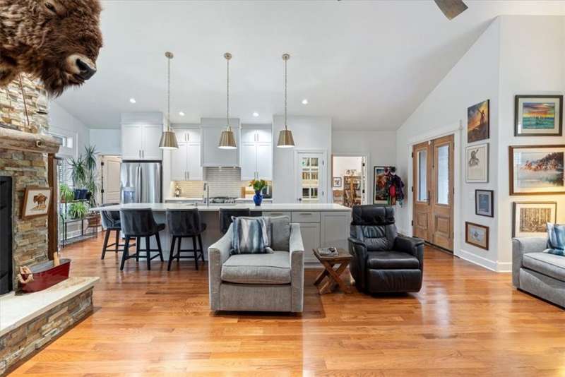Imagine a home perfectly placed to take advantage of the sunrise and sunset from the 41 foot screened porch! This lakefront oasis built in 2010 is the definition of tranquility! The professionally landscaped front yard leads you to this impeccable Lake Ann home. The current owners facilitated a complete kitchen remodel, from the large island, to the quartz countertops, new lighting, to all new cabinetry. Stainless appliances, including a gas stove and a walk in pantry. The kitchen area is open to the living room and features a newly redesigned fireplace with stone surround. Separate formal dining space with built in cabinetry. Off the kitchen is a flex space that could be used for future access stairs to take advantage of the lower level unfinished space. The wood flooring extends thru the home into the primary suite. Two guest bedrooms, one with a private deck. Lower deck with steps to the water. Stone seawall. New interior paint. Updated lighting. An exceptional lakefront home!