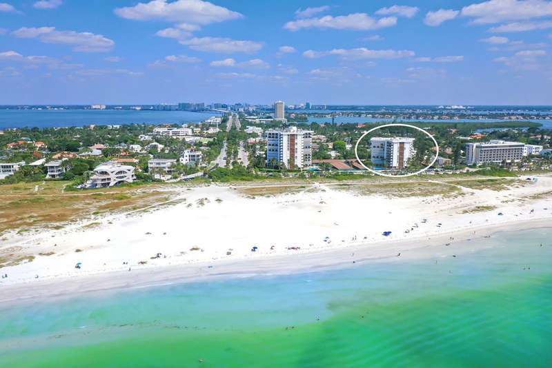 ST. ARMANDS TOWERS SOUTH - Located across the street from the crystal blue waters of Lido Beach, and two short blocks from St. Armands Circle, this furnished fifth-floor condo is the epitome of coastal chic with 1,275 sq ft of interior living space in an open floor plan, with two bedrooms and two full bathrooms. The east-facing residence extends a refined yet relaxing living experience with style that includes natural textures, a palette of coastal colors, and generous sliding glass doors from the living room and both bedrooms to the spacious balcony, creating an open airy feel throughout the space. Thoughtful updates such as ceiling fans and oversized tile floors are a perfect complement to the Florida lifestyle. The kitchen is open to the spacious living room and dining room, and is equipped with recessed lighting, stone counters, an undermount sink, beautiful cabinetry with plenty of storage, and stainless appliances. The primary bedroom includes an en suite bathroom and generous walk-in closet, and the additional bedroom is perfect for a home office, or an extra room for guests. There is a storage closet in the unit, and one covered carport space is included, with a private storage locker for beach toys. St Armands Tower South is a well-managed, pet friendly building (up to 25 lbs), with amenities that include a heated pool with Gulf views, beautifully updated lobby, community room with kitchen, library, and fitness room, with a laundry room on each floor, onsite management and maintenance supervisor. When you’re not at the beach, enjoy the upscale European ambiance on St. Armands Circle with art galleries, retail therapy, relaxing spa services, gourmet & casual sidewalk cafes, a vibrant social scene, a pedestrian-friendly promenade, and an array of local events just around the corner. The iconic Lido Key location is also just 3 miles from downtown Sarasota, so you can truly experience the metropolitan sophistication of Florida’s “Cultural Coast” from an elegant beachside locale at St. Armands Towers South.