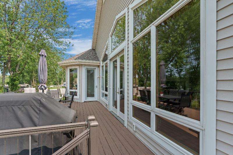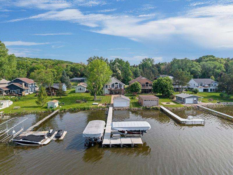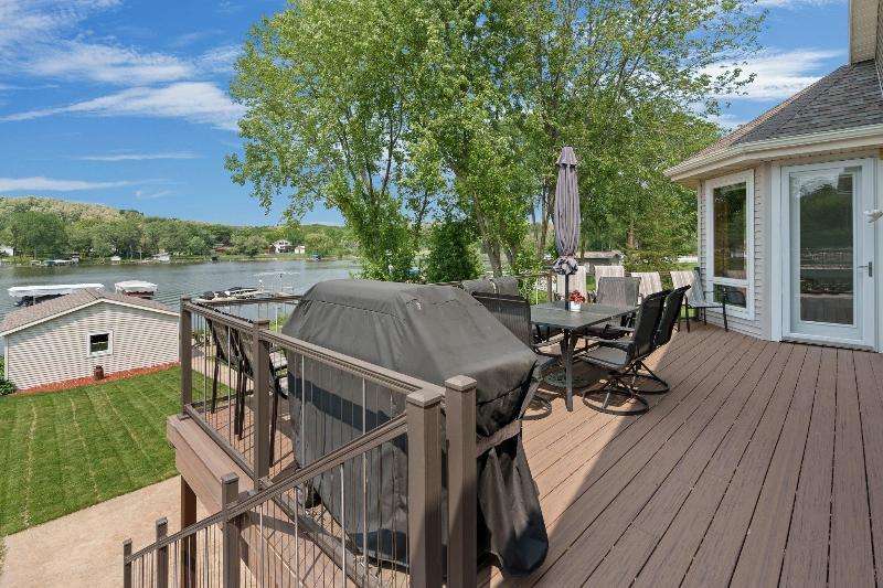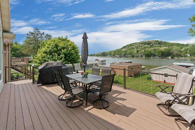 MOTIVATED SELLERS! Love where you live - welcome to your lakeside dream in Okee Bay! Only 1/2 hour easy commute to east or west Madison. This beautiful nearly 4,000 sq ft home features 5 bedrooms and 4 bathrooms, offering plenty of space for hosting, both inside and out on the new deck or lower level stamped patio overlooking the water, every day feels like a vacation! Enjoy the comfort of heated floors and gas fireplace in the finished basement--perfect for cozy winter evenings. With 60 feet of Lake Wisconsin frontage, a large boathouse, and . Plus, the sellers are including the dock with several extensions (approx. $40,000 value), 22' Bennington pontoon, lift and trailer! The 3-car garage provides plenty of room for all your lake essentials.