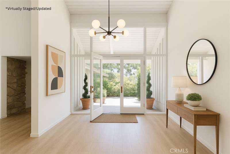 PRIVATE NORTH TUSTIN ESTATE | DUAL-GATED ENTRY | NATURE-RICH SETTING | POTENTIAL-FILLED OPPORTUNITY | Welcome to 1762 Terry Lynn Drive, a hidden sanctuary tucked into the hills of North Tustin. Privately set behind two separate gated entrances, this expansive 5-bedroom, 3-bathroom home rests on a secluded lot surrounded by mature trees, natural beauty, and an unmatched sense of quiet retreat. Offered for the first time in nearly 40 years, it's the kind of property that rarely comes available, where generations of memories have taken root, and the potential for transformation is only limited by your imagination. The home's layout offers ideal flexibility, featuring one bedroom and a full bath downstairs, perfect for guests, extended family, or a future office while four additional bedrooms are located upstairs, including the spacious primary suite with its own en-suite bathroom and tree-filled views. Vaulted wood-beamed ceilings in the family room create dramatic volume, while walls of glass bring in soft natural light and offer a front-row seat to the surrounding landscape. Though the property maintains much of its original character, it offers the perfect canvas for renovation. Imagine replacing the carpet with warm wood floors, updating the kitchen to match your lifestyle, or transforming the living spaces into an open-concept entertainer's dream. Whether you restore, reimagine, or simply refresh, the bones are already in place for something truly special. Outside, the grounds come alive with color, texture, and life. A natural orchard blooms across the property with persimmons, pomegranates, macadamia, and kumquat trees. Towering pines and a magnificent eucalyptus provide shade and seasonal visits from red-tailed hawks. With Peters Canyon just moments away, weekend hikes and early morning walks are always close at hand. 1762 Terry Lynn Drive is more than just a home; it's a lifestyle defined by privacy, nature, and long-term potential. This is your chance to create something remarkable in one of North Tustin's most coveted neighborhoods.