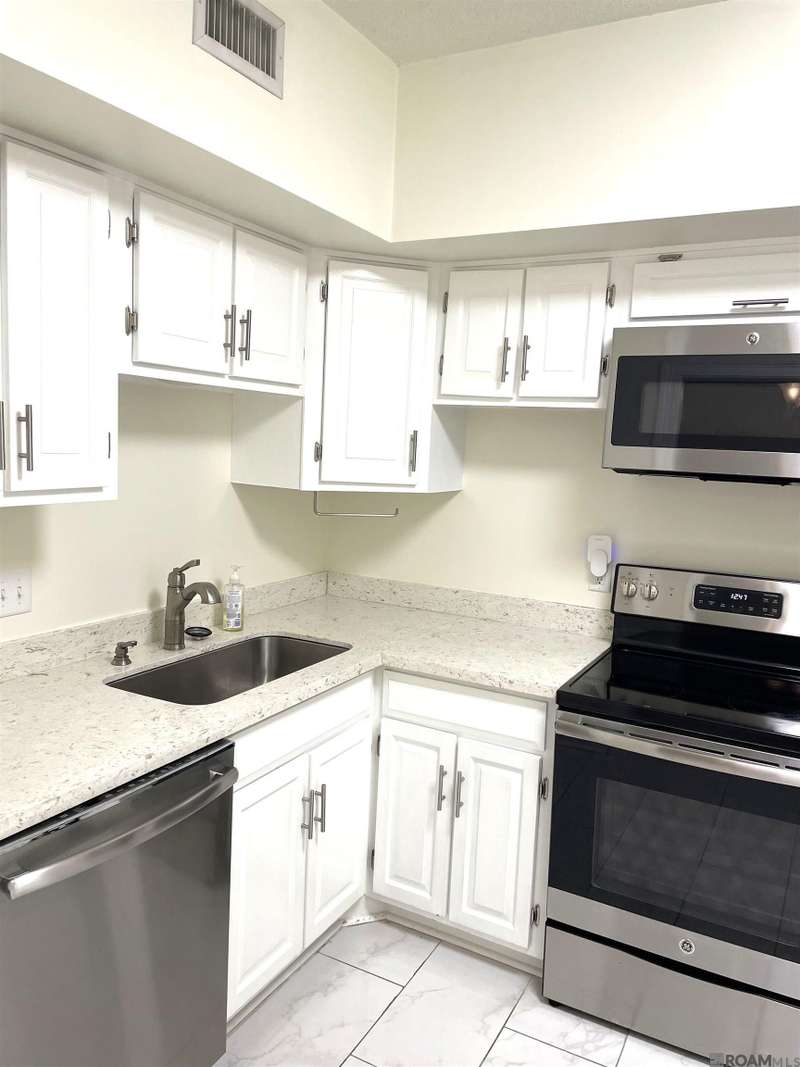 Lower Garden District Condo Luxury! On the parade route! Neutral tones, tile and LVT throughout, fitness room, library, expansive courtyard, covered parking for one vehicle, (additional spots may be rented from other owners), 24 hour security guards, gated entrance, Completely Renovated Rooftop Terrace featuring a city view from the Dome to the CCC! Owner Agent