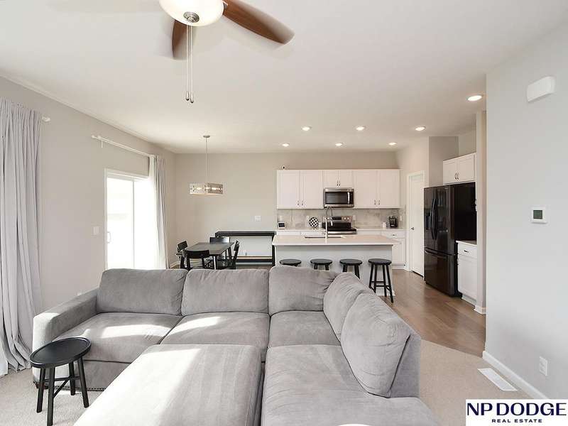 The Slate Plan by Richland Homes. Open Floor Plan featuring all White Woodwork, LVP Flooring, Large Quartz Island, Pantry. Move In Ready. Light and Bright with lots of Natural Lighting. Oversized Patio, Vinyl Fenced Yard. Sprinkler System. Upstairs has 3 Large Bedrooms and Laundry. Better than New. Gretna Schools. Easy Access to I-80.