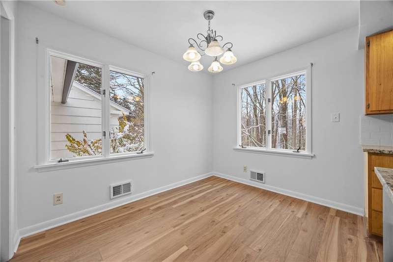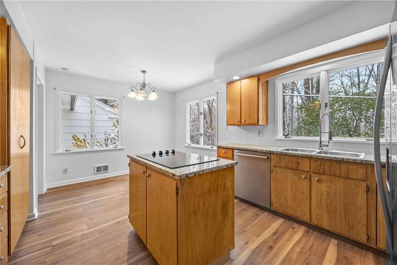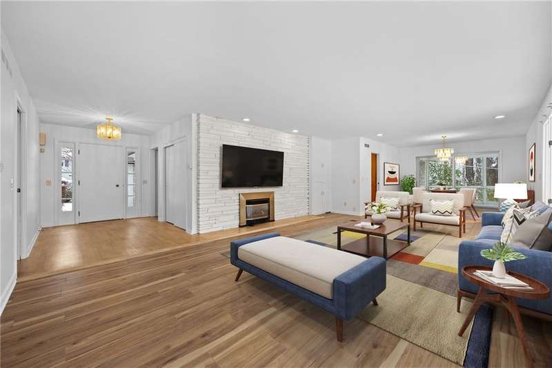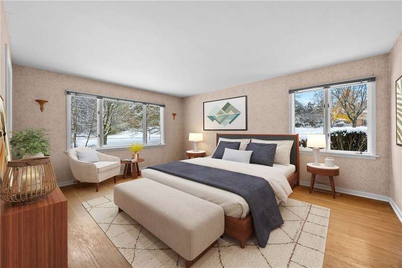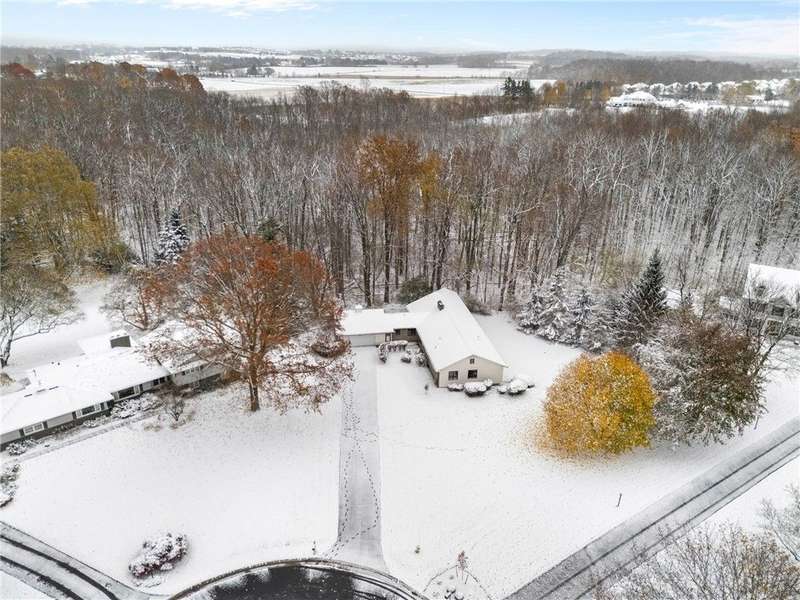Discover timeless mid-century modern design and unparalleled serenity at this sprawling 4-bedroom, 3.5-bath ranch home in Pittsford. Situated on a quiet cul-de-sac on nearly an acre of land, this property offers the ultimate in privacy as it backs directly to lush woods. Step inside to be greeted by large windows flood the main floor with natural light, blurring the lines between indoor and outdoor spaces. The spacious living areas are perfect for both quiet evenings and entertaining guests, while a classic enclosed porch provides a peaceful retreat to enjoy the stunning natural surroundings. With 4 generously sized bedrooms and 3.5 bathrooms, there is plenty of room for family and guests. This home features a partially a finished basement, with 60 feet of windows looking out on the private wooded yard with abundant wildlife, offering flexible space for a home gym, recreation room, or whatever your lifestyle requires. Experience the perfect blend of classic architecture and modern comfort in one of Pittsford's most desirable locations. The home has been updated in 2025 with a new roof, new driveway, paint throughout, electrical service, two full bathrooms, granite countertops in the kitchen and laundry area, kitchen sink and range top and luxury vinyl flooring!!! Delayed negotiations to 11/24 @ 11:00am. Open House Sun Nov 23, 11:00AM - 12:30PM