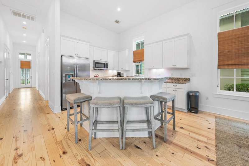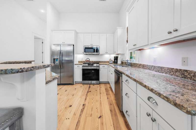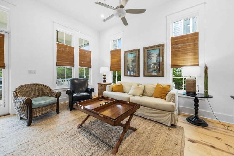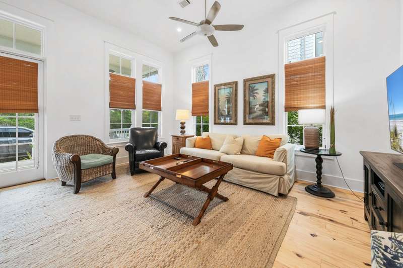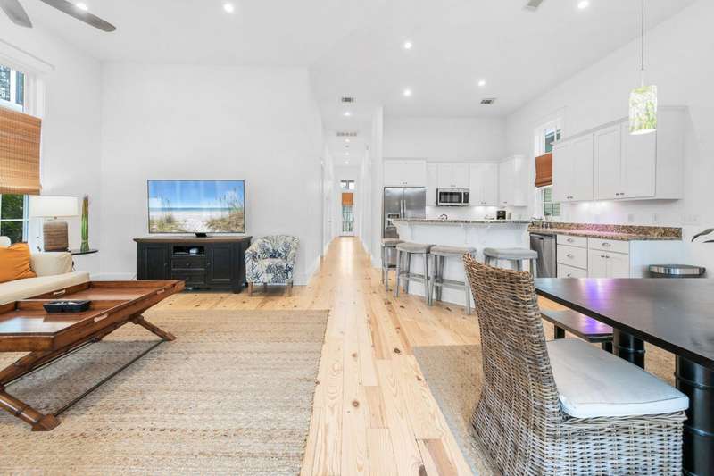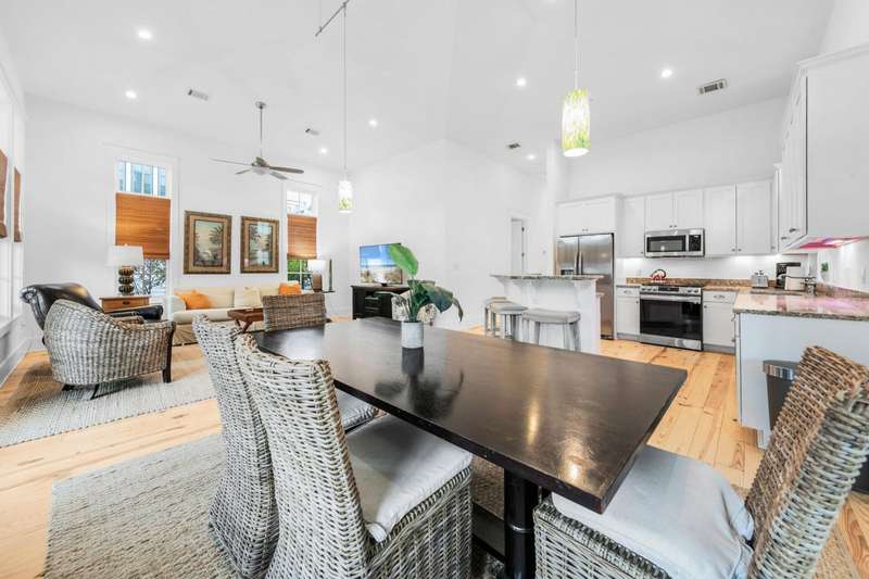 Charming one-level beach cottage nestled in a gated coastal community along 30A. This thoughtfully designed 3-bedroom, 2.5-bath home features vaulted ceilings, rich hardwood floors, and an open-concept layout perfect for relaxed beachside living. The kitchen is bright and coastal with white cabinetry, granite countertops, and stainless steel appliances. Enjoy peaceful mornings and breezy evenings on both the front and rear covered porches. Community amenities are truly resort-style?including an infinity-edge pool overlooking the dunes, a second owner's pool, hot tub, fitness center, tennis courts, and a clubhouse. Your ideal beach retreat awaits!