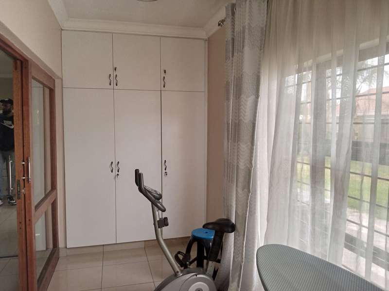 Step into elegance and sophistication with this stunning 4-bedroom modern home, designed for both comfort and style. This freehold property offers an abundance of space and top-tier amenities, making it the perfect sanctuary for your family. Key Features: • Bedrooms: Four generously sized bedrooms, perfect for rest and relaxation. • Bathrooms: Two full bathrooms with exquisite modern finishes, blending functionality and luxury. • Kitchen: A dream kitchen featuring ample cupboard space, a built-in dining table, and a pantry for all your culinary needs. • Living Spaces: A spacious lounge with a cozy fireplace, a grand dining room, and a sunlit gym room, study, or office to suit your lifestyle. • Sun Room: A spectacular sunroom at the heart of the home, adorned with lush green plants and enclosed by floor-to-ceiling glass, creating a serene and luxurious ambiance. Outdoor & Entertainment: • Lapa & Braai Areas: A large lapa and multiple braai areas for hosting unforgettable gatherings. • Garden: A beautifully landscaped garden featuring palm trees and lush greenery. • Storage: A big storage room outside for added convenience. • Servants Quarters: Spacious quarters with a private bathroom for extra accommodation. • Garage: A double garage with ample space for your vehicles and storage. This home is more than a property; it’s a lifestyle upgrade. With every detail carefully crafted for modern living, you’ll find comfort, elegance, and practicality in every corner. Don’t miss out! Contact me today to book an appointment and secure this dream home.