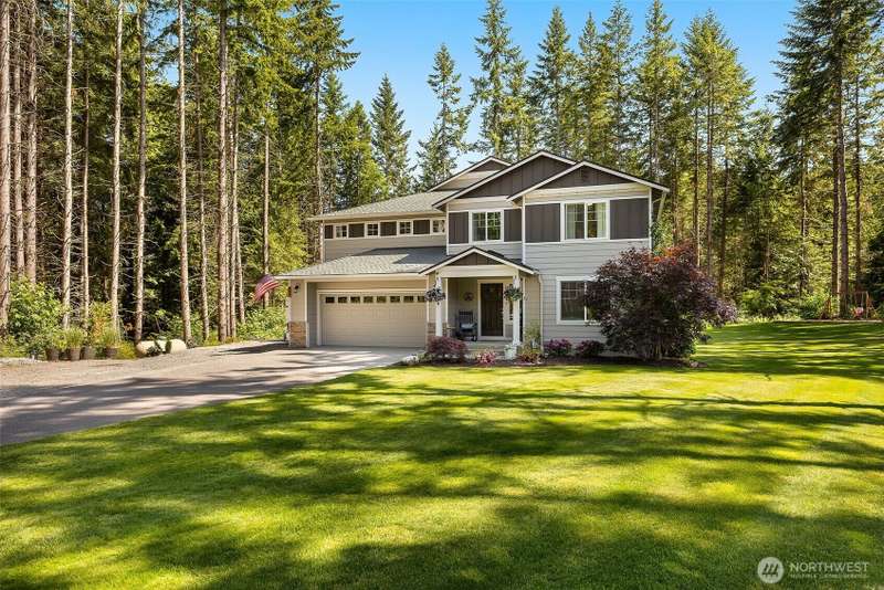 [4.74 Acres] 4 + Bedroom Home w/ Premium Outdoor Living; stunning 3,100 sq. ft. home, refined comfort & upscale finishes throughout. Featuring 4 spacious bedrooms, 2.5 baths, an office w/closet, 3-car garage, designed for both everyday living & grand entertaining. The heart of the home is a beautifully appointed great room w/ lodge-inspired details, seamlessly appointed to a chef-inspired kitchen complete w/ premium appliances, large island, & ample storage. Formal dining room adds elegance for special occasions. Expansive primary suite is a true retreat, featuring a spa-like ensuite & generous walk-in closet. [BETTER THAN NEW] All large bedrooms providing comfort & privacy. Room to add a shop. (BTV) 22kW Generator. RV PARKING AND HOT TUB