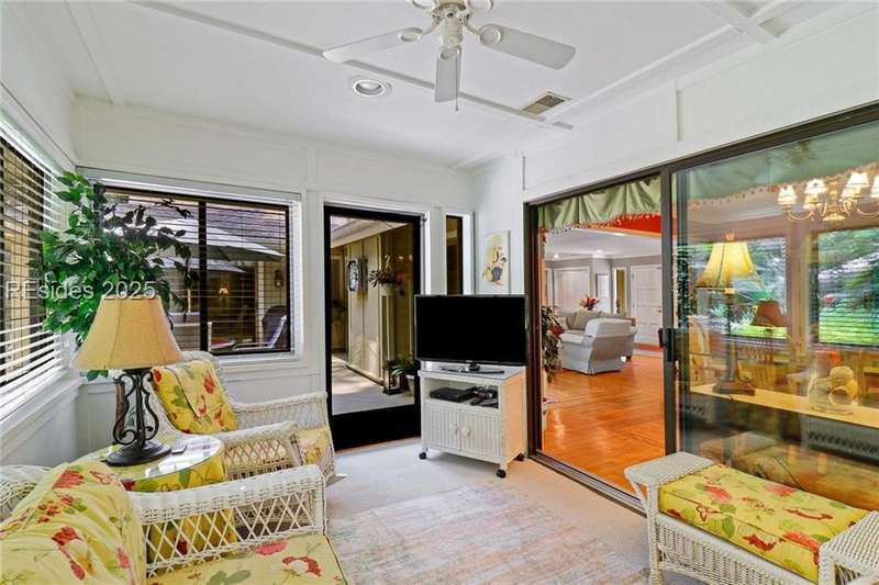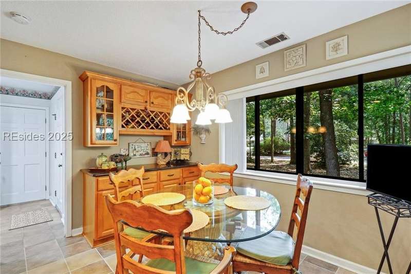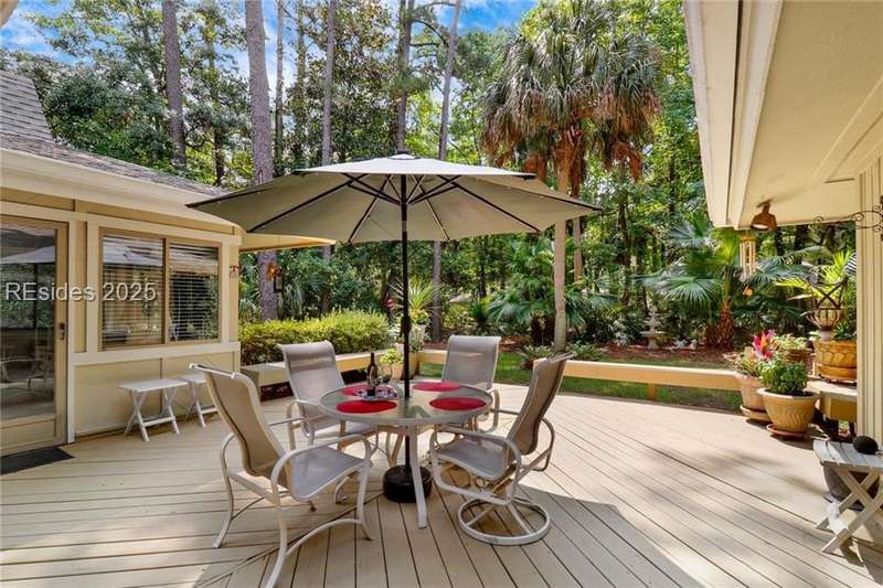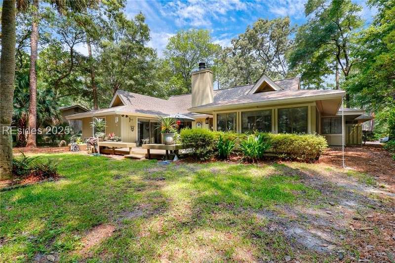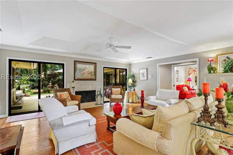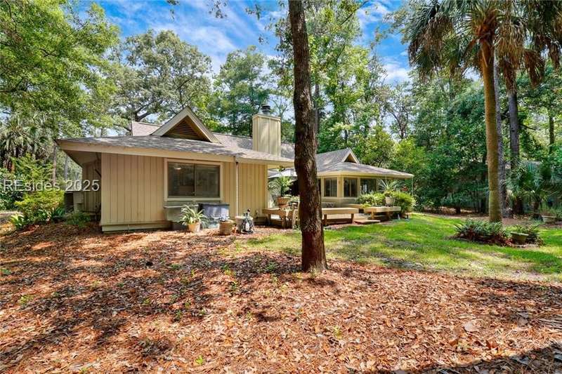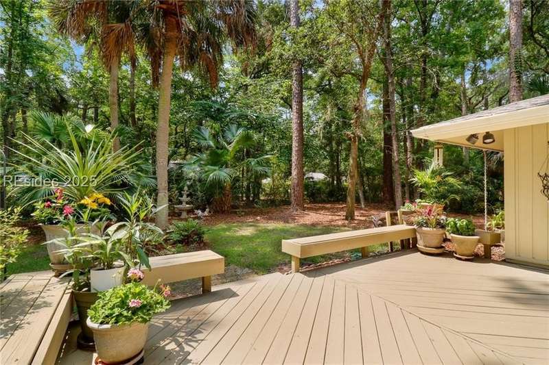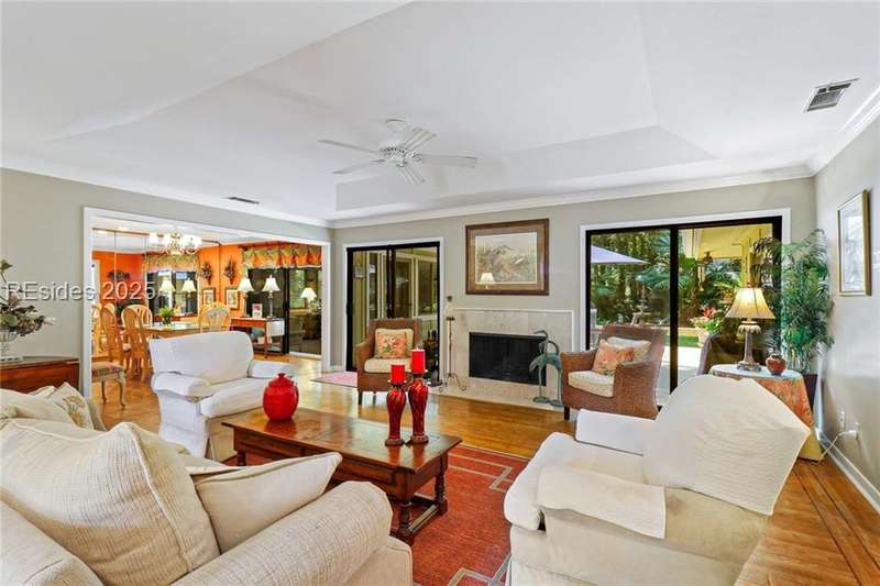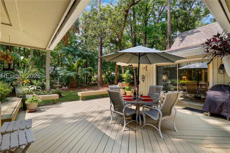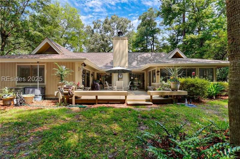 Fantastic opportunity to own a low-maintenance, move-in ready single-level home in HHP. This well-designed floor plan features spacious rooms, a tray ceiling and fireplace in the living room, formal dining with built-in storage, and an eat-in kitchen with stainless appliances and granite counters. Includes a large walk-in pantry/utility room, cozy Carolina room, garage, irrigation system, and a spacious deck overlooking a private yard. Newer HVAC!