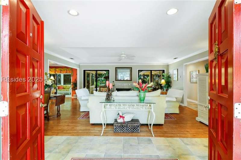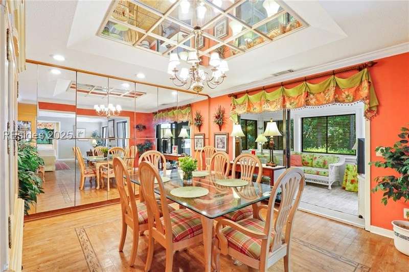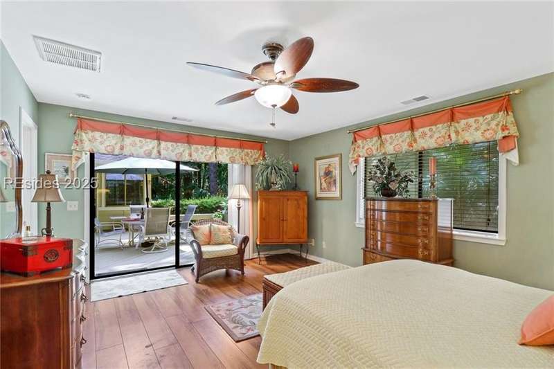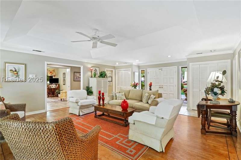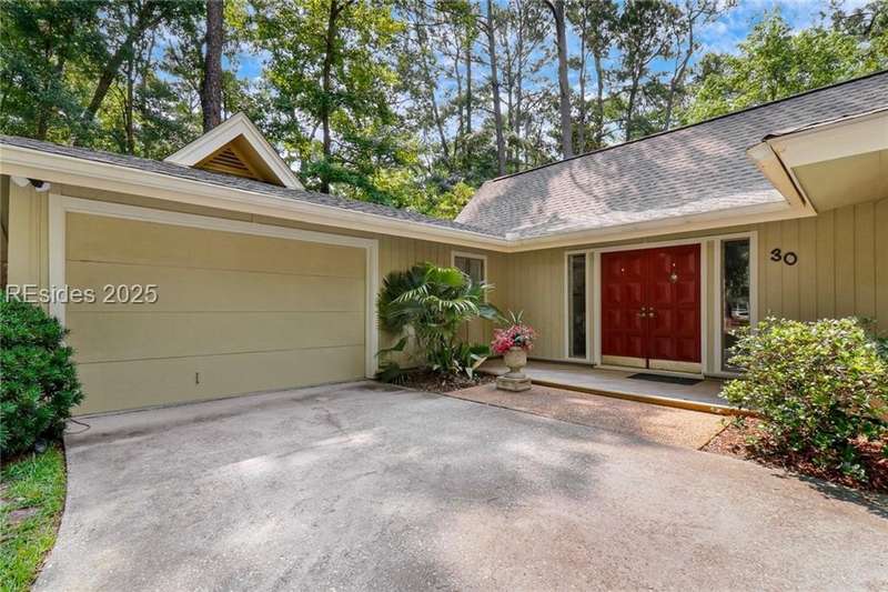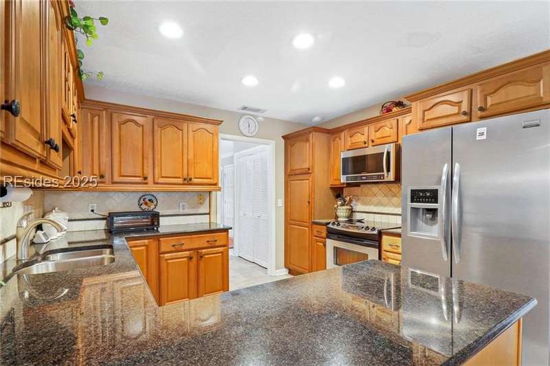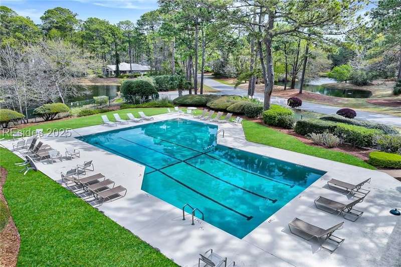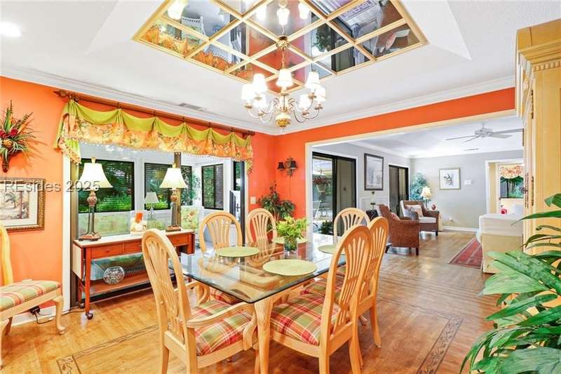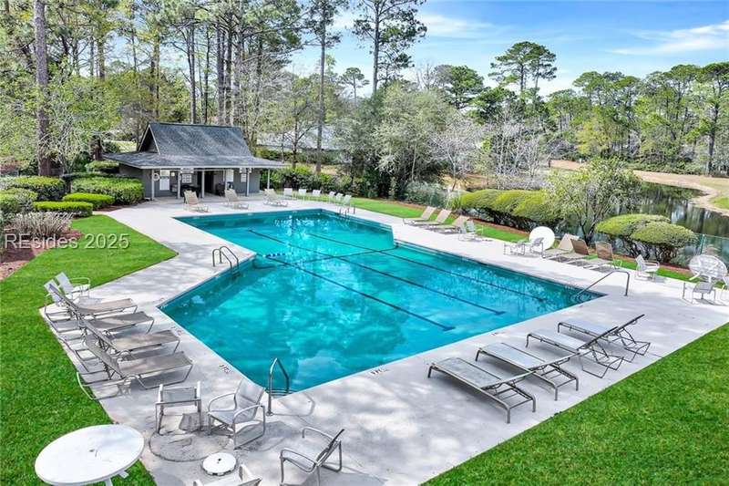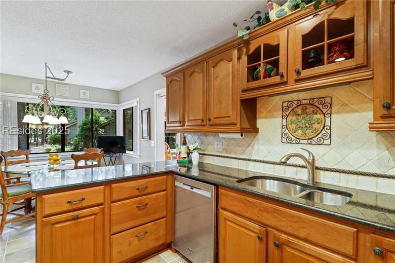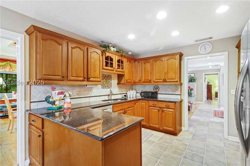 Fantastic opportunity to own a low-maintenance, move-in ready single-level home in HHP. This well-designed floor plan features spacious rooms, a tray ceiling and fireplace in the living room, formal dining with built-in storage, and an eat-in kitchen with stainless appliances and granite counters. Includes a large walk-in pantry/utility room, cozy Carolina room, garage, irrigation system, and a spacious deck overlooking a private yard. Newer HVAC!