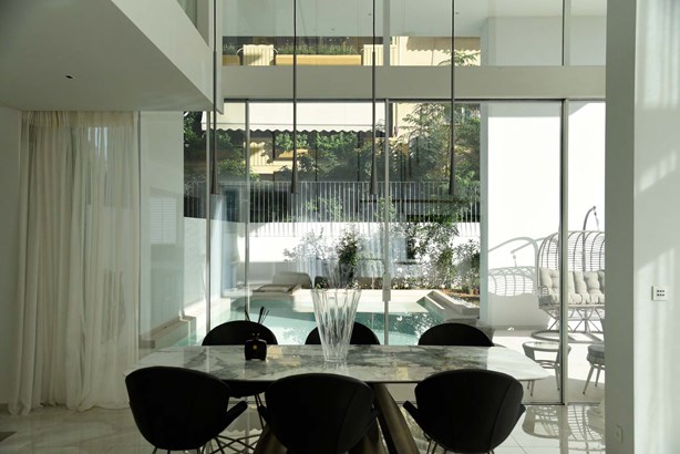This ground-floor residence of 367 sq. m. total area with a loft and basement in Glyfada is fully equipped, furnished, highly functional, and ready for delivery. Designed as a maisonette with an open-plan layout, it features an internal staircase, a private elevator, and a private entrance that leads through its exclusive-use garden of 944 sq.m., where two outdoor swimming pools are located. The ground floor, covering 148 sq.m., includes a spacious living and dining area with a double-height ceiling, a kitchen, a guest WC, and one master bedroom. The 105 sq.m. loft level offers two additional master bedrooms. The 115 sq.m. basement consists of an open-plan playroom area with a master bedroom, a living and dining space with a kitchenette that benefits from natural light through a cours anglaise, a laundry room, and a staff room with an ensuite bathroom. Features • Fully equipped, furnished, and ready for delivery • Bedrooms: 4+1 • Internal staircase and private elevator • Private entrance through a 944 sq.m. exclusive-use garden • Two outdoor swimming pools • Multiple master bedrooms across all levels • Playroom and secondary living/dining area with kitchenette in the basement • Laundry room • Staff room with ensuite bathroom