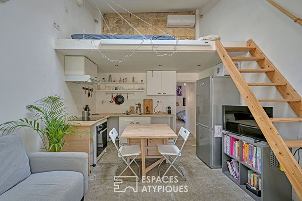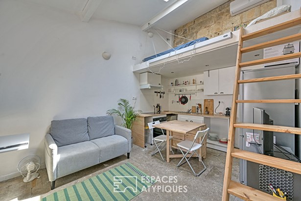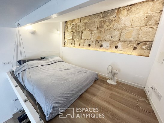 This one-bedroom apartment plus mezzanine seduces with its decidedly atypical character: unique volumes, beautiful high ceilings, unobstructed views of the rooftops of the Écusson district, and a warm atmosphere sheltered from the hustle and bustle of the city.