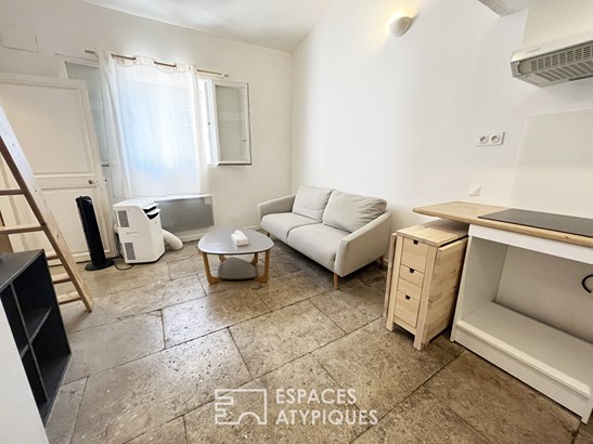 Exclusively at Espaces Atypiques Montpellier, discover this rare property nestled on the top floor of a charming condominium on Rue de la Loge, one of the most emblematic streets of the historic center.