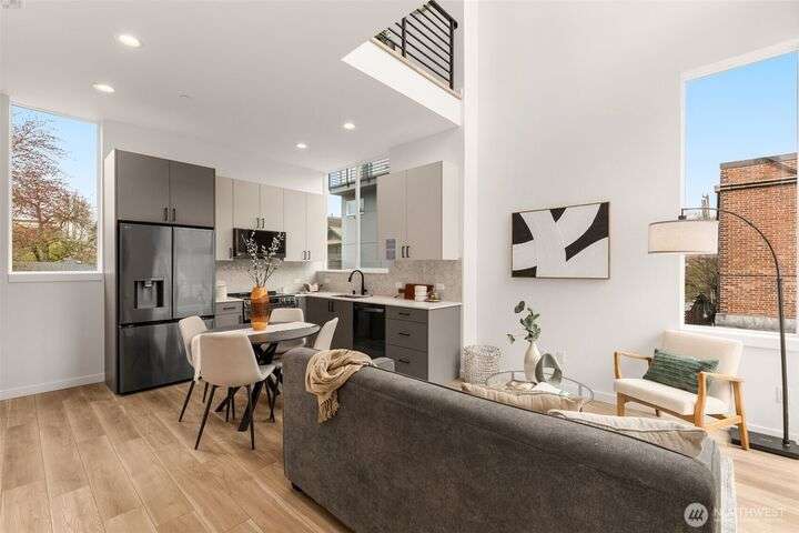Light-filled beauty at Olive by Greencity Homes! Nestled in one of Seattle's most lively neighborhoods, this elegant home offers access to local eats & Light Rail while enjoying life on a quiet street, 2 yrs of parking included! Sunlight washes over this home through oversized windows at every turn, & an open floorplan with double-height ceiling offers unique living w/ a lofted living space. An office, guest room & flex space offer extra flexibility, topped by a luxe primary suite & cute, rare backyard space perfect for a quiet read or your pup. Enjoy Capitol Hill staples within moments, including the Deluxe, French Guy's Bakery, Broadway Market, Volunteer Park & more. Come see!
