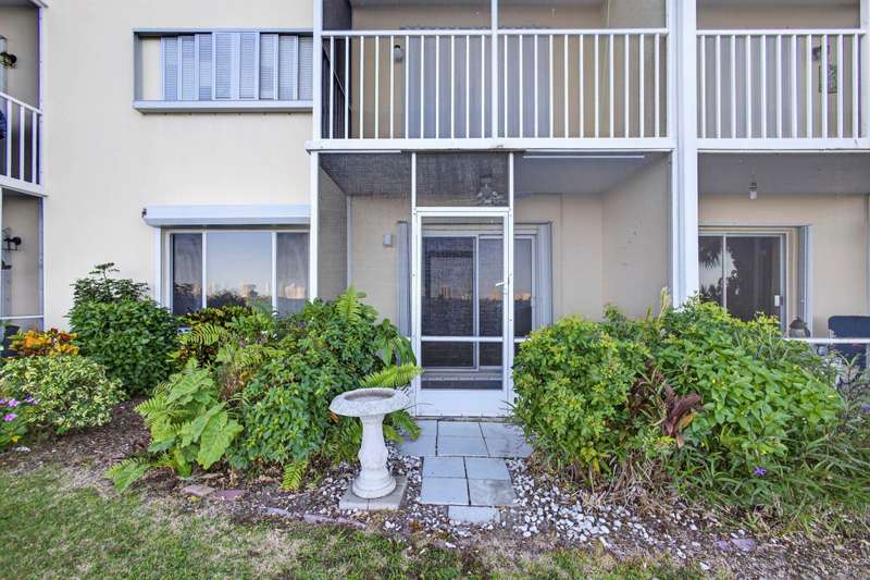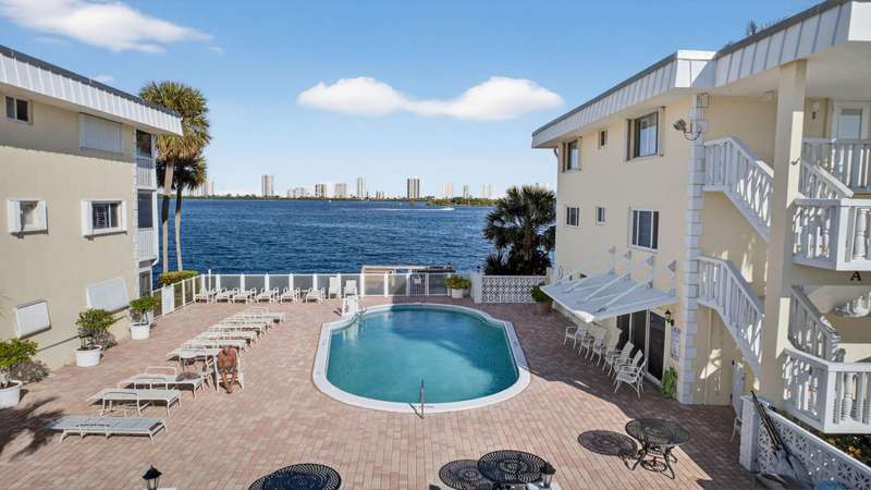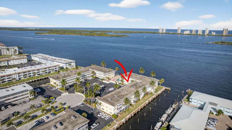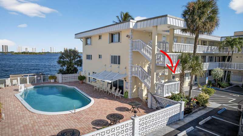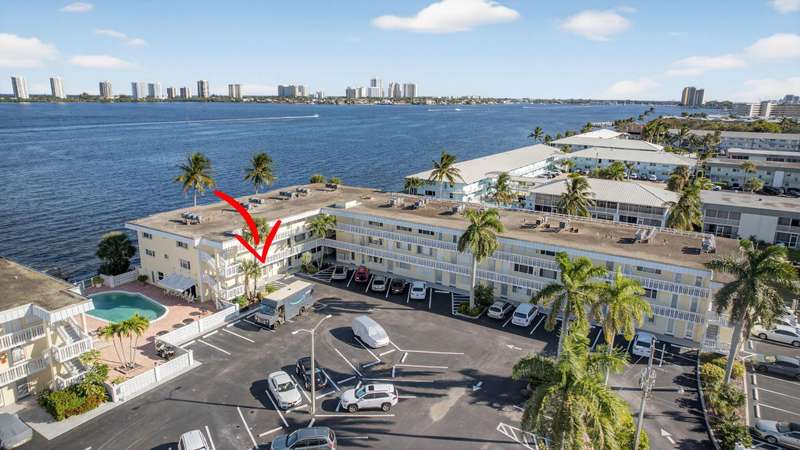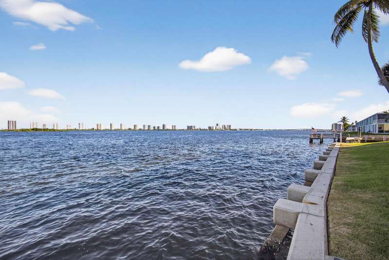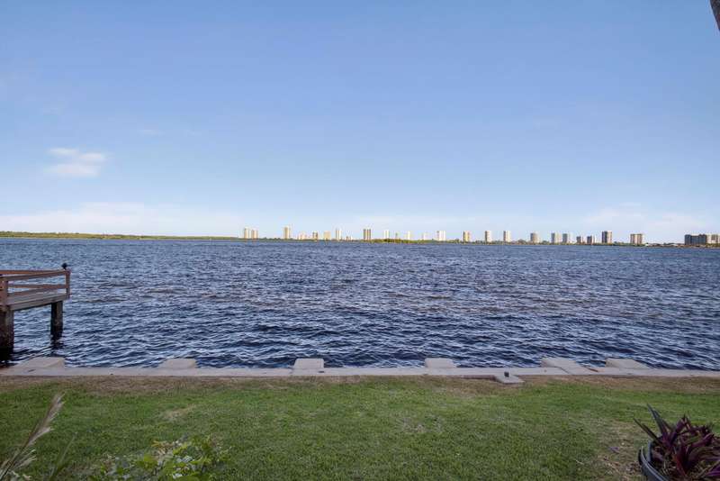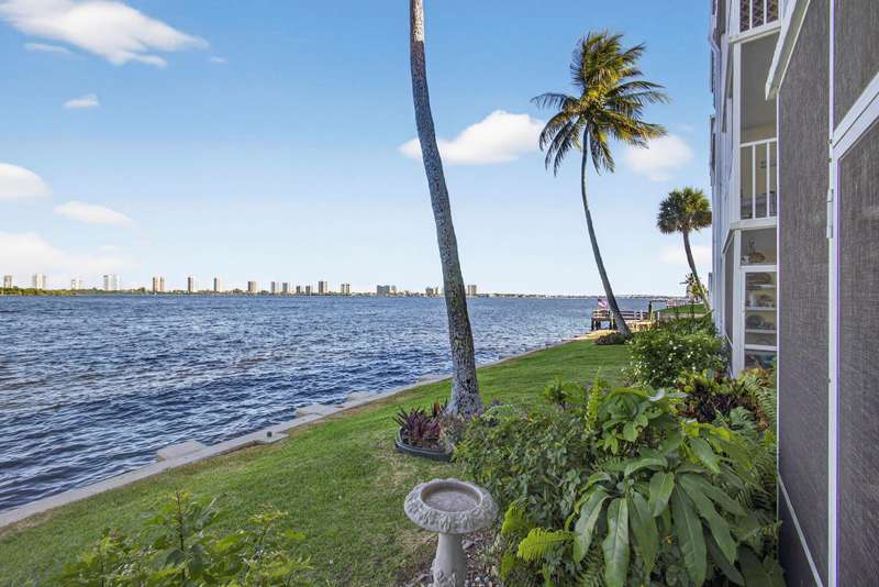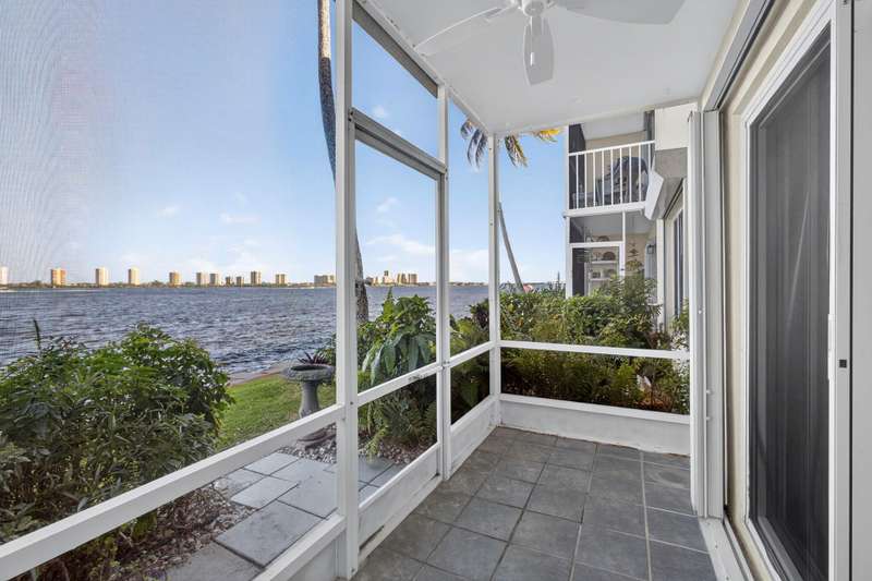 Rarely available 2 BR 1st floor unit on the direct Intracoastal with wide water views of the Intracoastal Waterway and Singer Island. Enjoy your morning coffee on the screened in porch, watching the sunrise over the sparkling blue water. This 2 BR, 1 bath unit has been lovingly maintained with an updated kitchen and bathroom, tile floors, updated windows, accordion shutters, updated electrical panel and NO popcorn ceilings. Unit has leasing rights to a 28' slip for $1400 a yr. If boat slip is not wanted, it goes back to the association as slips are leased by owners & lessees on a first come first served basis and owned by the association. Central location, close to Publix, shopping, restaurants, NPB Country Club and Peanut Island. 20 min to PBIA. Special assessment paid by seller.