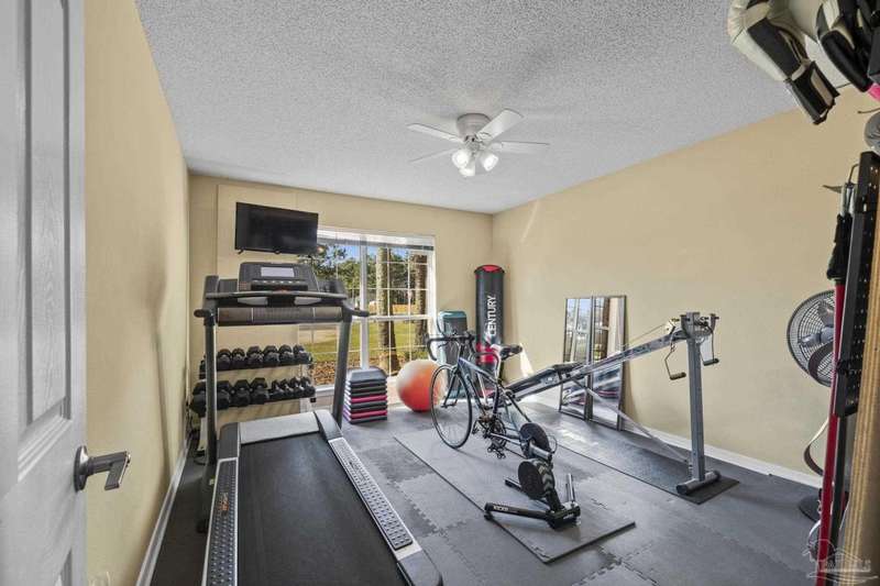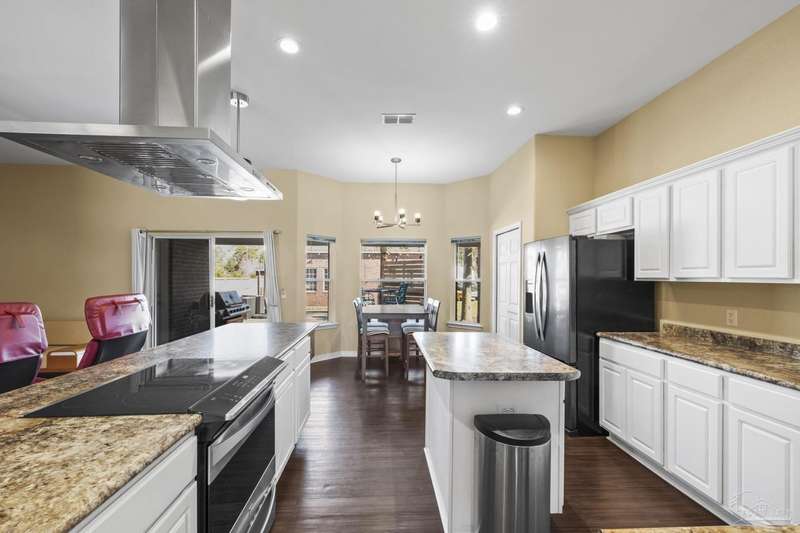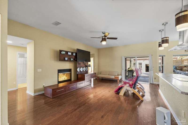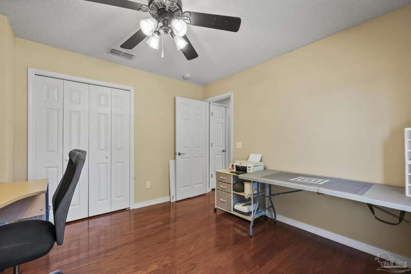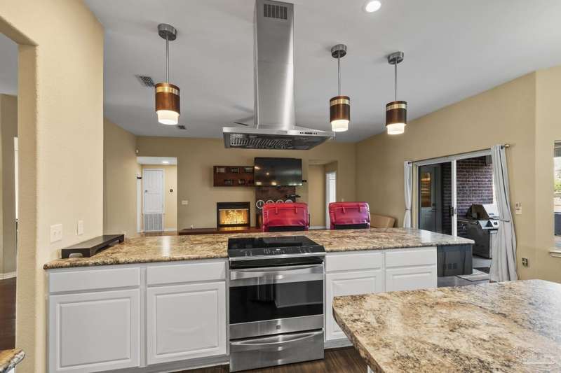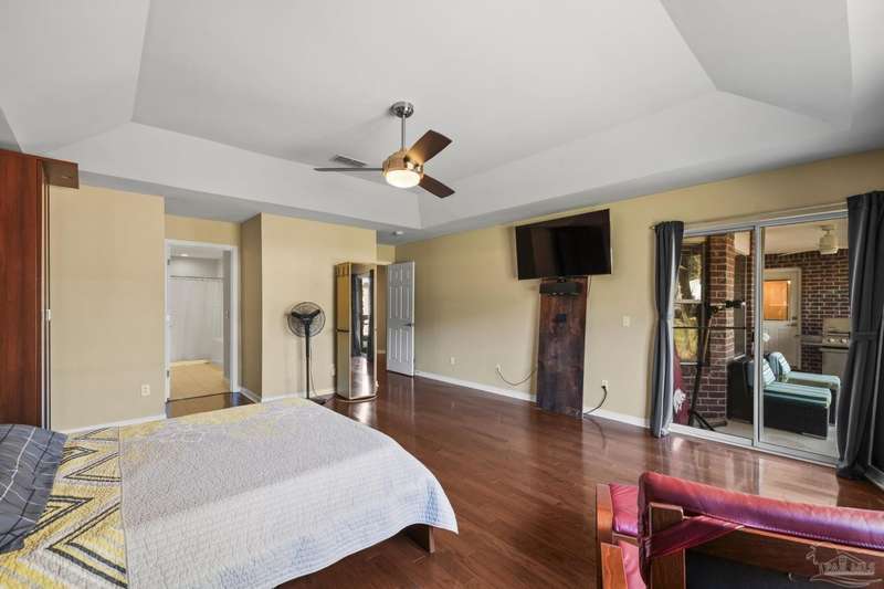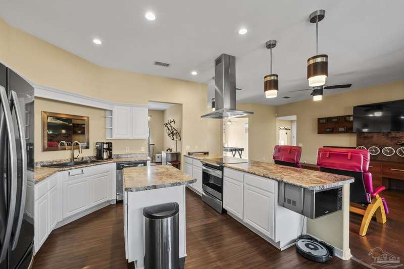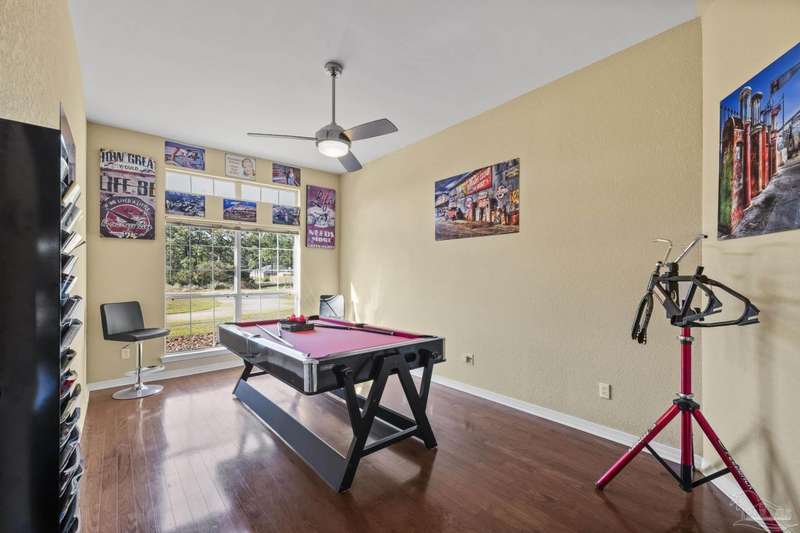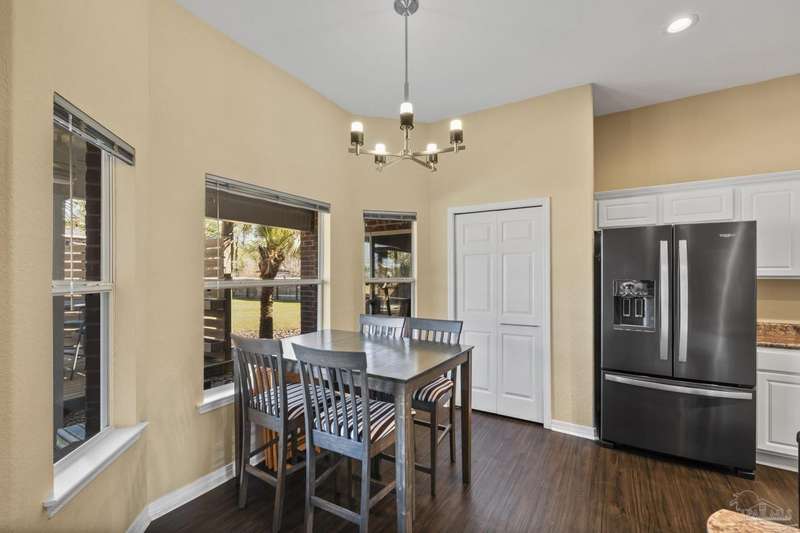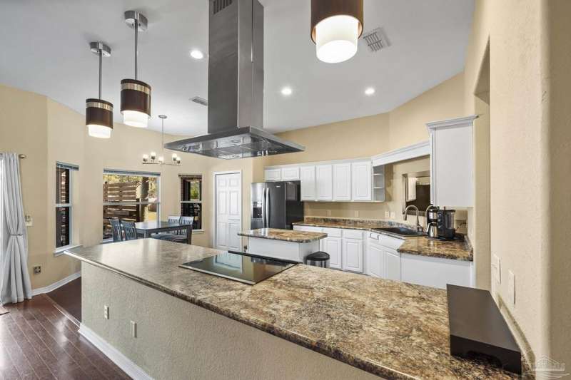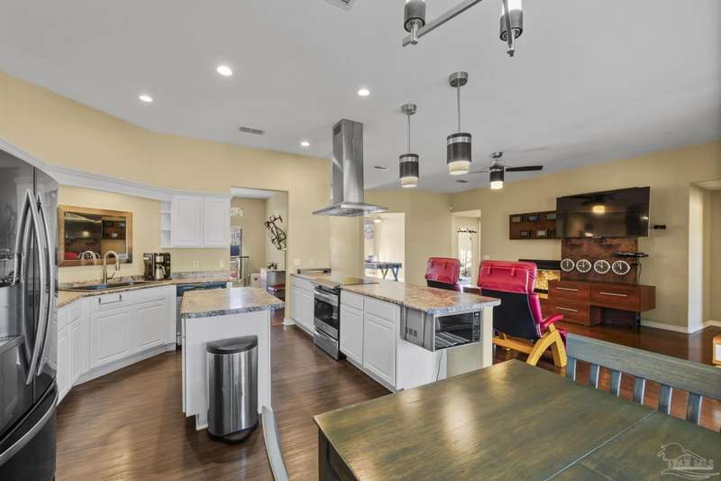 LIMITED TIME OFFERING for this home with standout feature of an additional detached - ALL BRICK - 1200 sq ft garage - perfect for the tinkerer or just to SAVE MONEY on storage. This versatile space offers endless possibilities - ideal for the ultimate game room, gym, entertainment area for holidays or other get-togethers, storing boats, classic cars, or creating a workshop or hobby area. There is a separate electrical panel, 3 large 8' tall by 16' wide roll up doors, lots of built-in storage cabinets & additional driveways. Embrace the epitome of Florida living in this expansive - meticulously maintained home, nestled on a sprawling corner lot with an on-property RV parking area in the backyard. Located off the beaten paths yet within the coveted Holley By The Sea community in Navarre. Step inside & be captivated by the generous layout, designed for seamless entertaining & comfortable living. The home boasts 4 bedrooms & 3 baths, providing ample space for everyone. There is a formal dining room & FLEX room in the front of the home that flow through to the kitchen & great room which are flooded with natural light, creating an inviting atmosphere. The interior features high smooth ceilings, hardwood flooring, updated fixtures, & open kitchen with an island & lots of counter space. The guest suite features a bath with door to the covered patio. The main suite is a true sanctuary with door to the patio & en-suite bath, offering tile flooring, 2 spacious walk-in closets, water closet, soaking tub & separate shower. Extend your living space outdoors onto the large patio & deck complete with built-in bar, NEW fire pit & planter box wall, perfect for enjoying the gentle breezes & Florida sunshine. The expansive corner .63 acre lot provides ample room for outdoor activities, gardening, or simply relaxing in your private oasis & there is plenty of shade in the back yard & also for a pool but who needs a pool since HBTS offers 3 & lots of amenities. SELLER CONCESSIONS OFFERED.