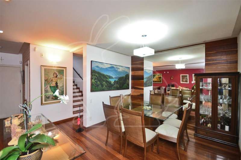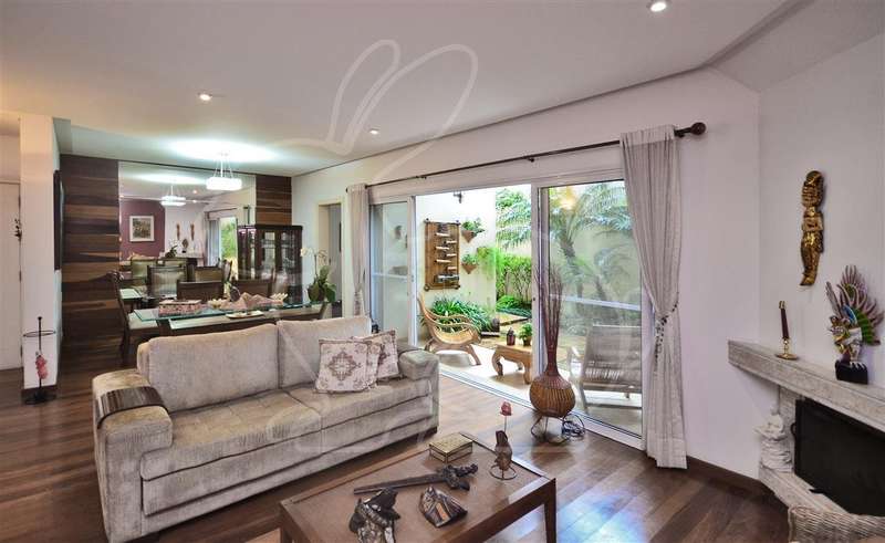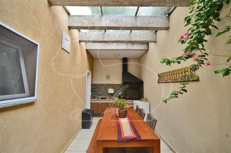 Casa em condomínio fechado com três pavimentos. Living para 3 ambientes com lareira, varanda com lindo jardim externo. Lavabo. Espaço gourmet com churrasqueira. 4 ótimas suítes. Sótão com terraço, sauna, sala íntima e área zen. Aquecedor solar, ar condicionado e garagem para três carros além de sistema de alarme. Ótima localização!
