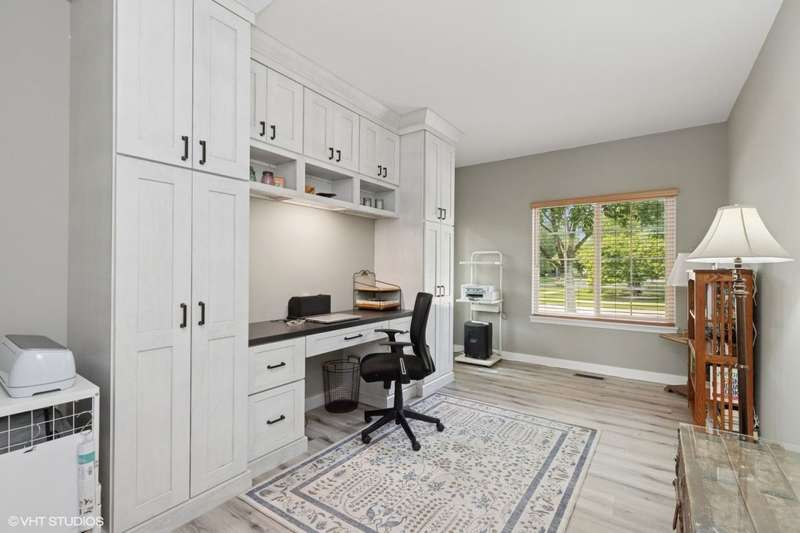 Beautiful 5 bedroom, 2 full bath, 2 half bath home awaits in sought after Elysian Fields. Gleaming hardwoods, spacious rooms, and many updates throughout make this home just right. Step in the front door to the two story foyer off of the combined living and dining room. You will love the convenient floor plan with an open concept kitchen and family room with fireplace. Plenty of counter space, cabinets and pantry, and an additional bump out for your breakfast nook offer the comfortable home you're looking for. Step outside to your stamped concrete patio or the large sunroom to enjoy all four seasons. The 5th bedroom on the main floor has been thoughtfully converted to an office with built in desk space and storage. Laundry and a powder room complete the first floor. Four generous bedrooms upstairs featuring 2 large closets each or a walk-in closet will meet your needs. The primary features a beautiful ensuite including water closet, separate shower and bath, double sinks, two walk in closets, and heated floors. Down in the finished basement a large family room, additional living space, a powder room, and a workshop/storage area will impress. This home is move in ready and has been lovingly cared for by its original owners.