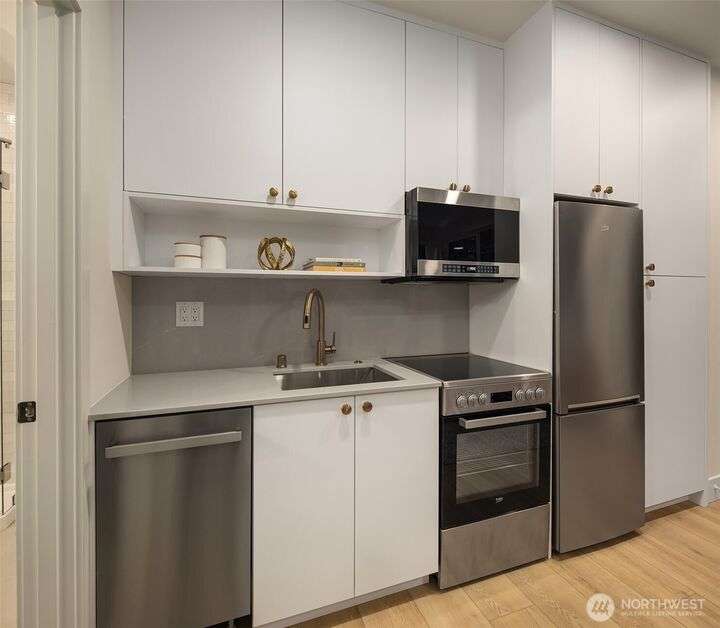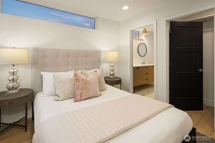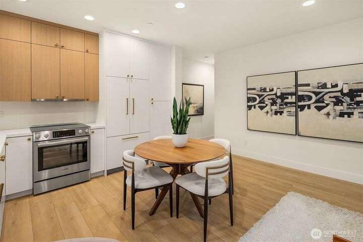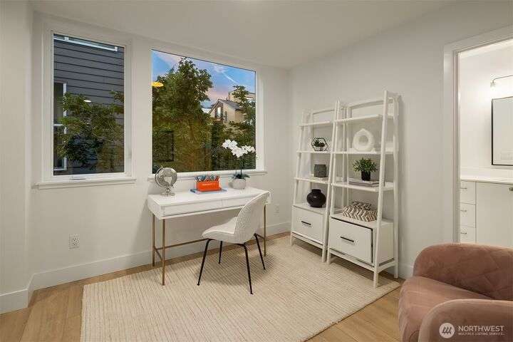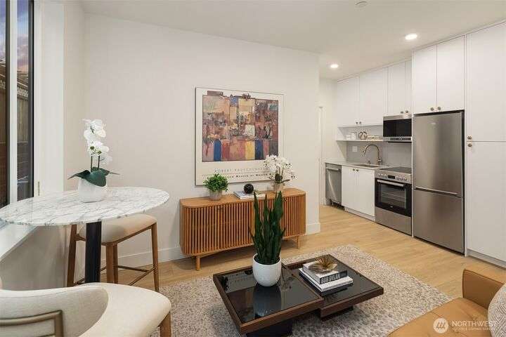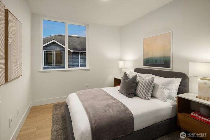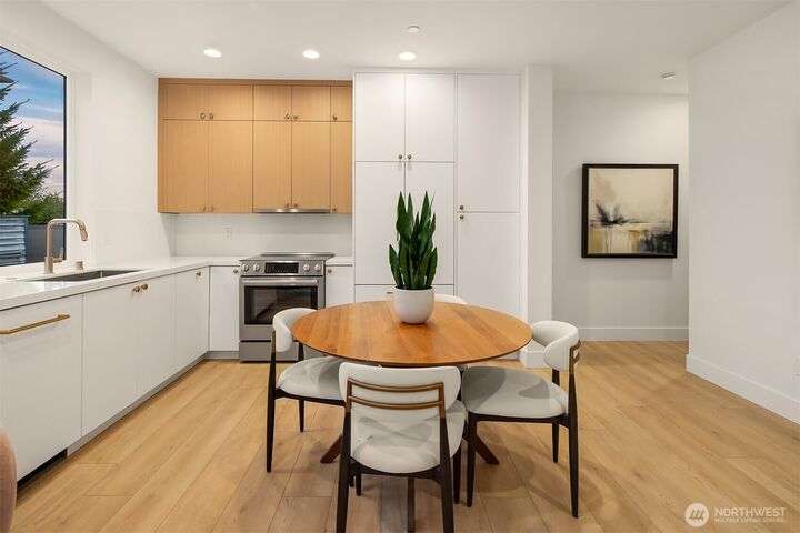 Acclaimed developer Halverson Design Build presents a classic New York City-style collection of residences, each featuring rare self-contained apartments on the first floors, ideally suited for rental, guest quarters, home offices, or live/work spaces. Modern design + a thoughtful layout highlight this sun-drenched Fremont townhome. Chef’s kitchen offers premier stainless appliances, quartz counters + designer finishes. Unwind in the luxurious primary bedroom suite with spa-like bath, which occupies the home’s entire top level. Step up to a private rooftop deck, an urban oasis with mesmerizing views + great potential for entertaining. Vibrant, walkable neighborhood with great parks + dining.